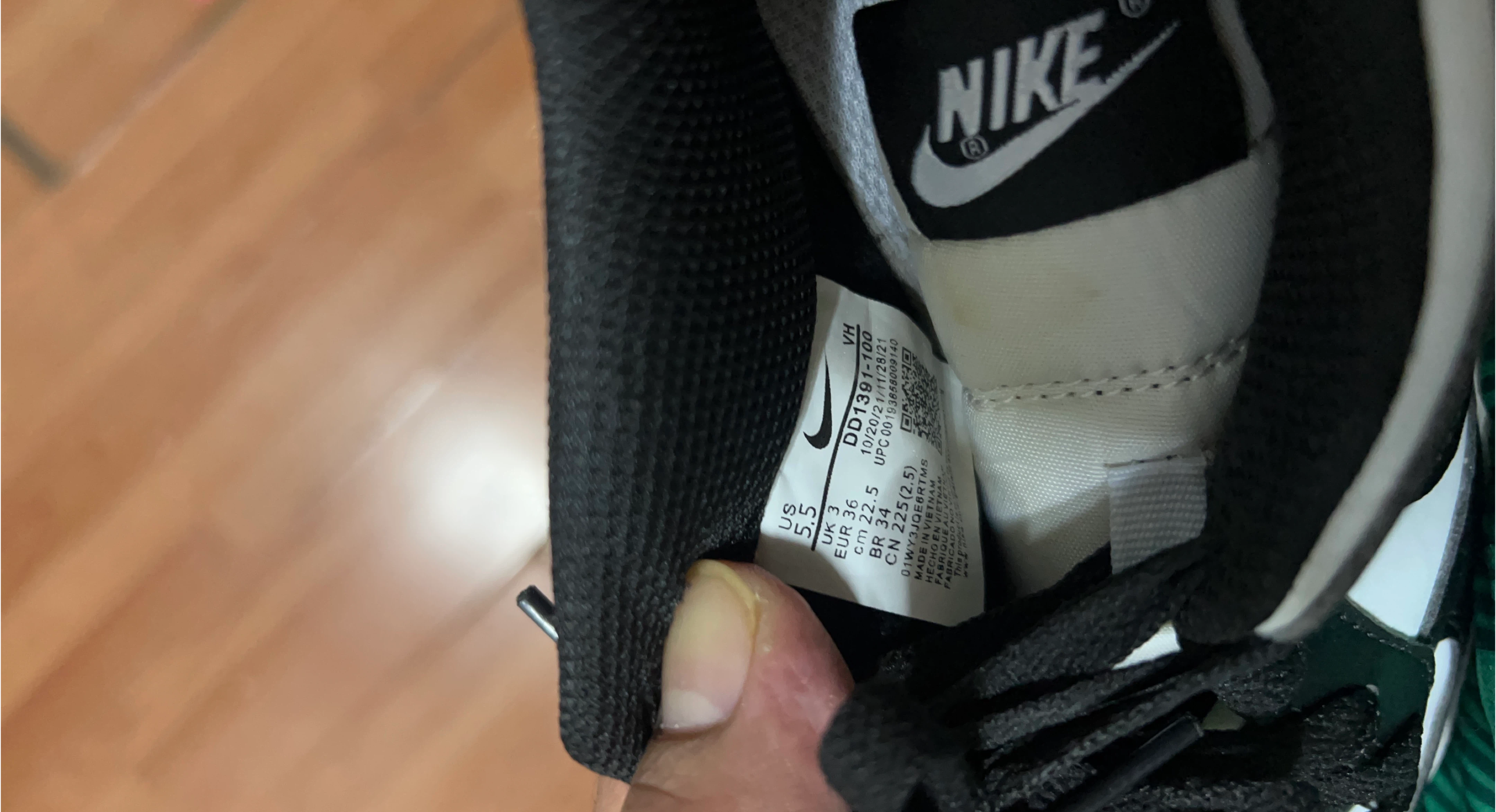 15Selling a pair of Nike shoes, model number DD1391-100. They are a US size 5.5, UK size 3, EUR size 36, and cm size 22.5. Made in Vietnam.
