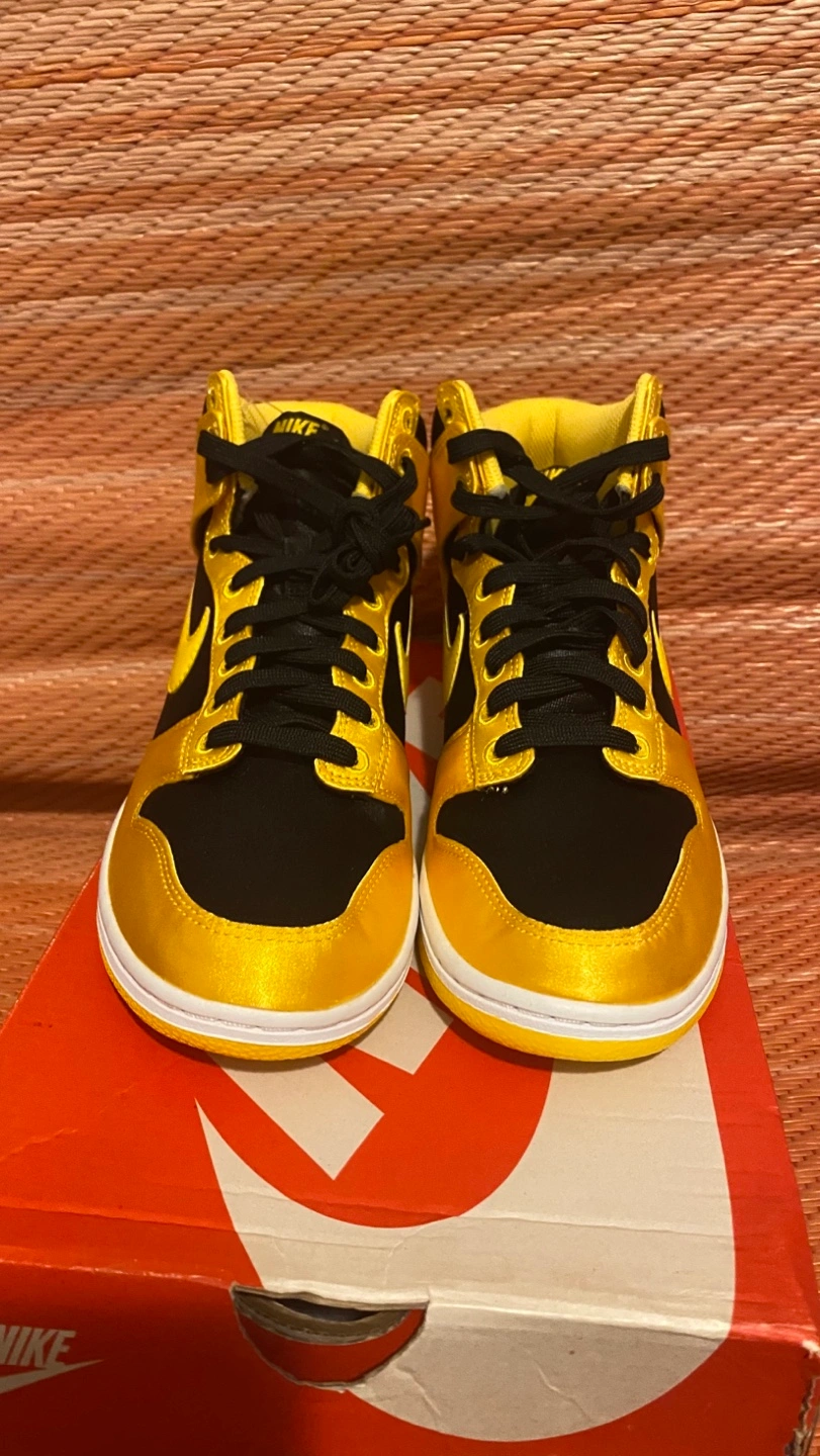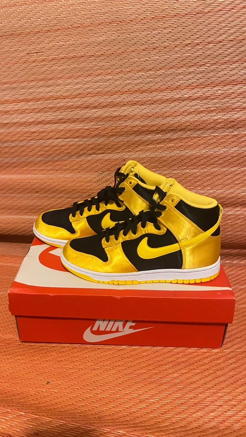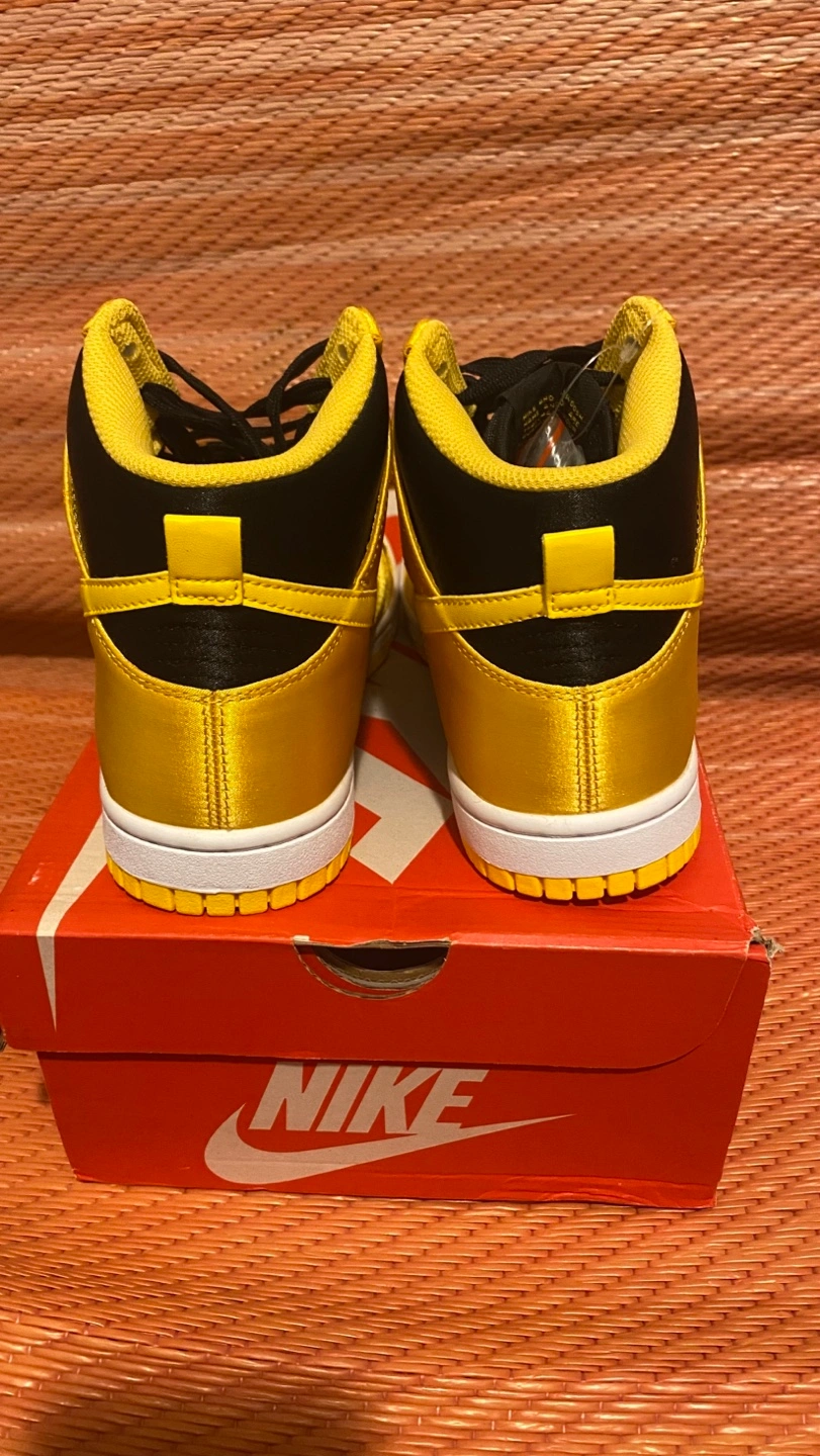 NIKE DUNK HIGH "SATIN GOLDEN ROD" BLACK-VARSITY MAIZE Size 7 women new I. Box with extra laces