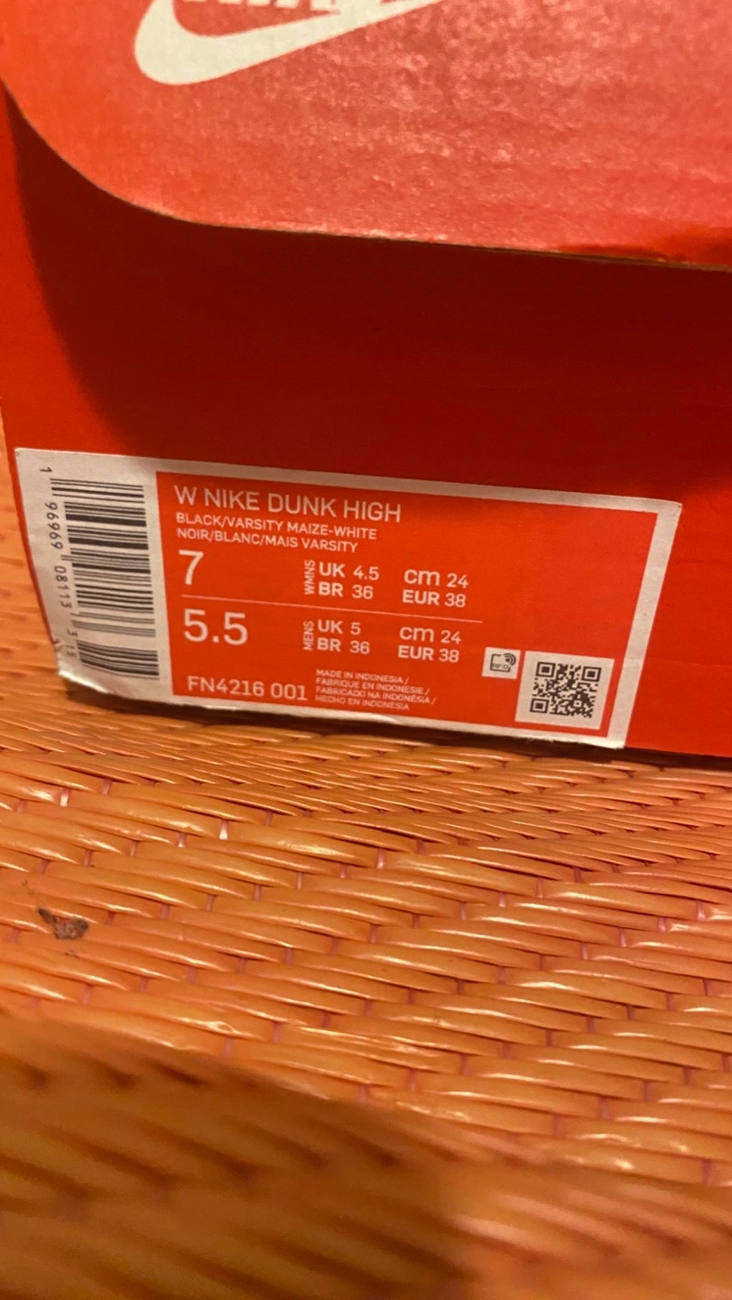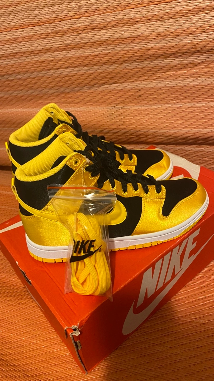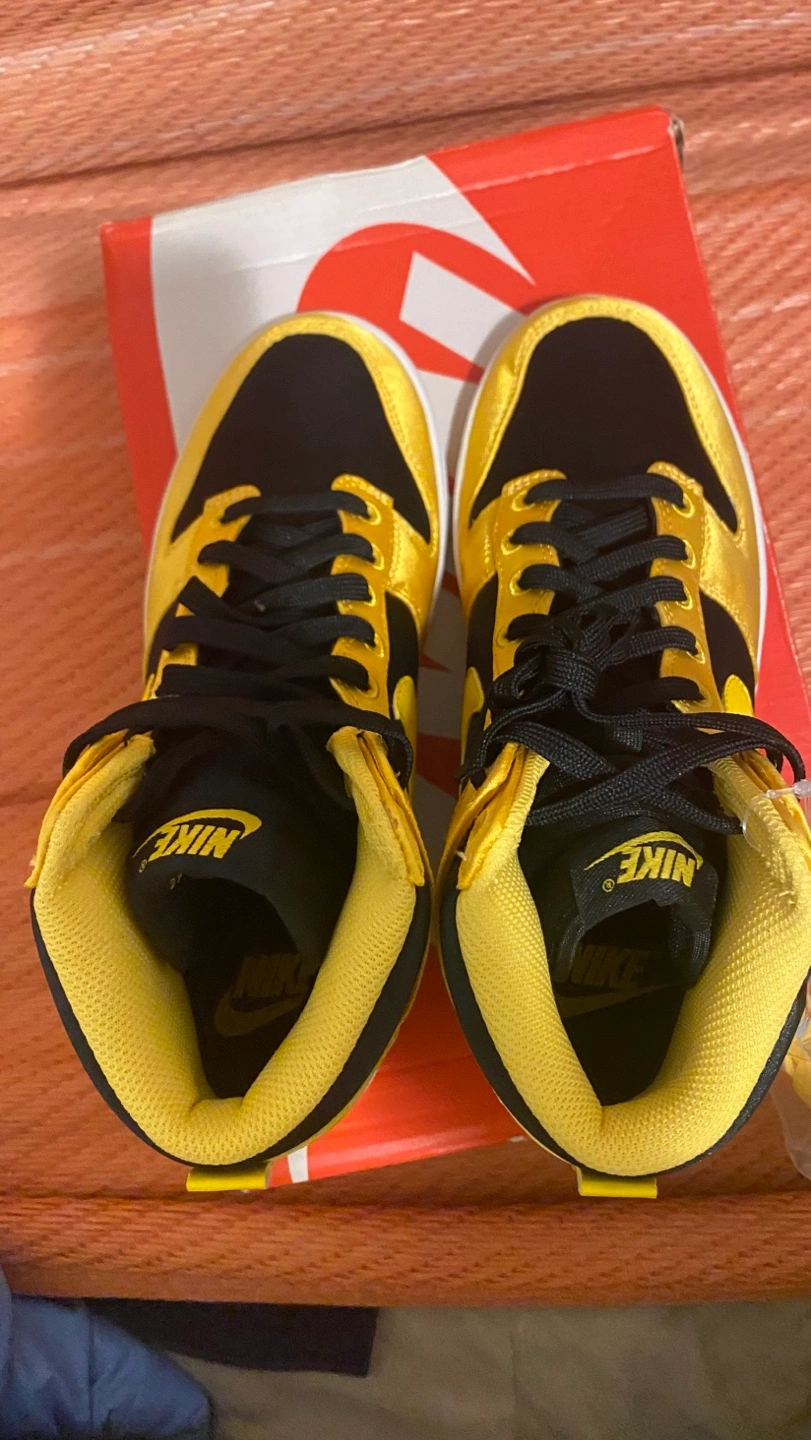 NIKE DUNK HIGH "SATIN GOLDEN ROD" BLACK-VARSITY MAIZE Size 7 women new I. Box with extra laces