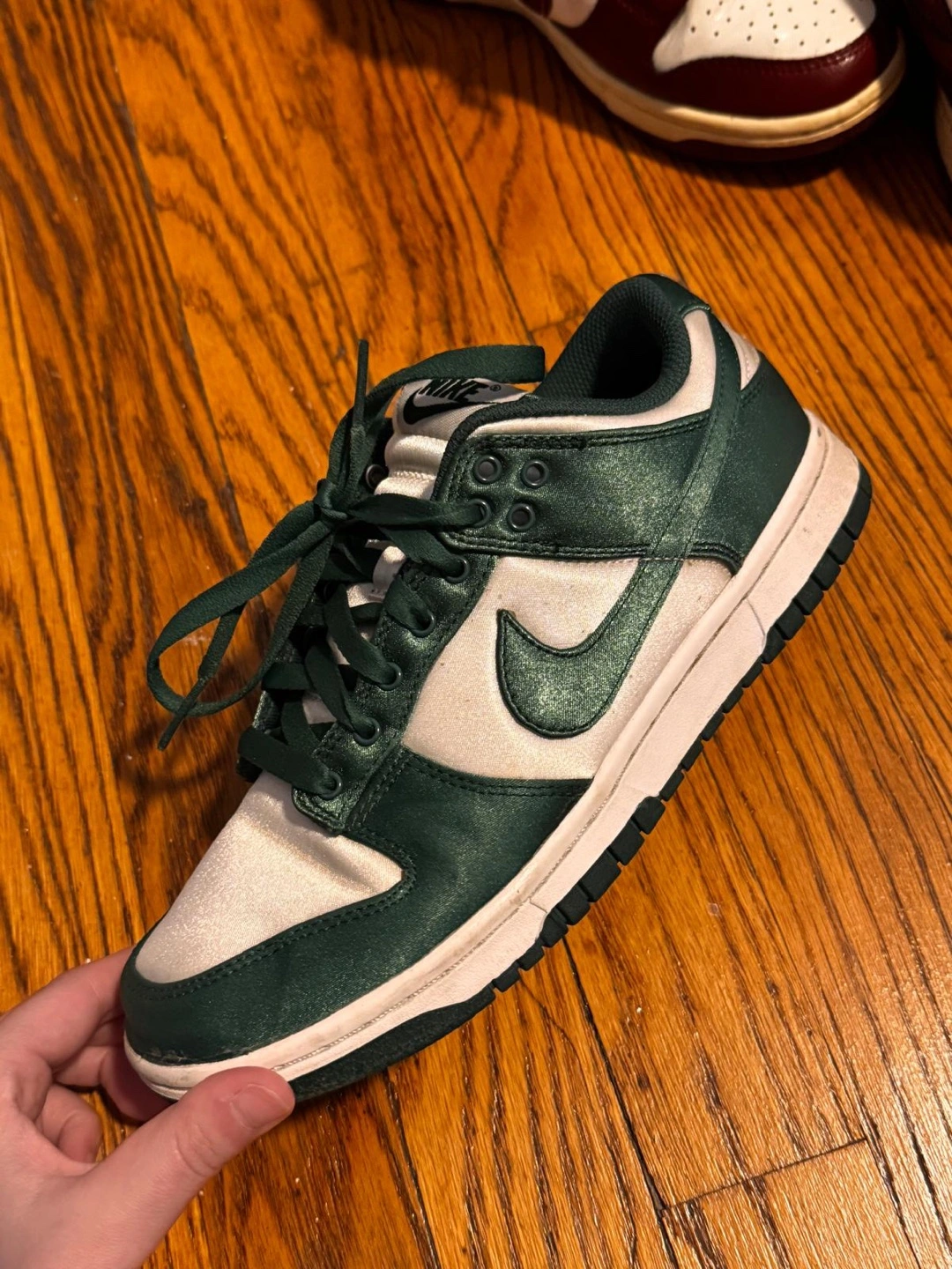 20Selling a pair of Nike Dunk Low sneakers in green. They are in good condition and ready for a new home!