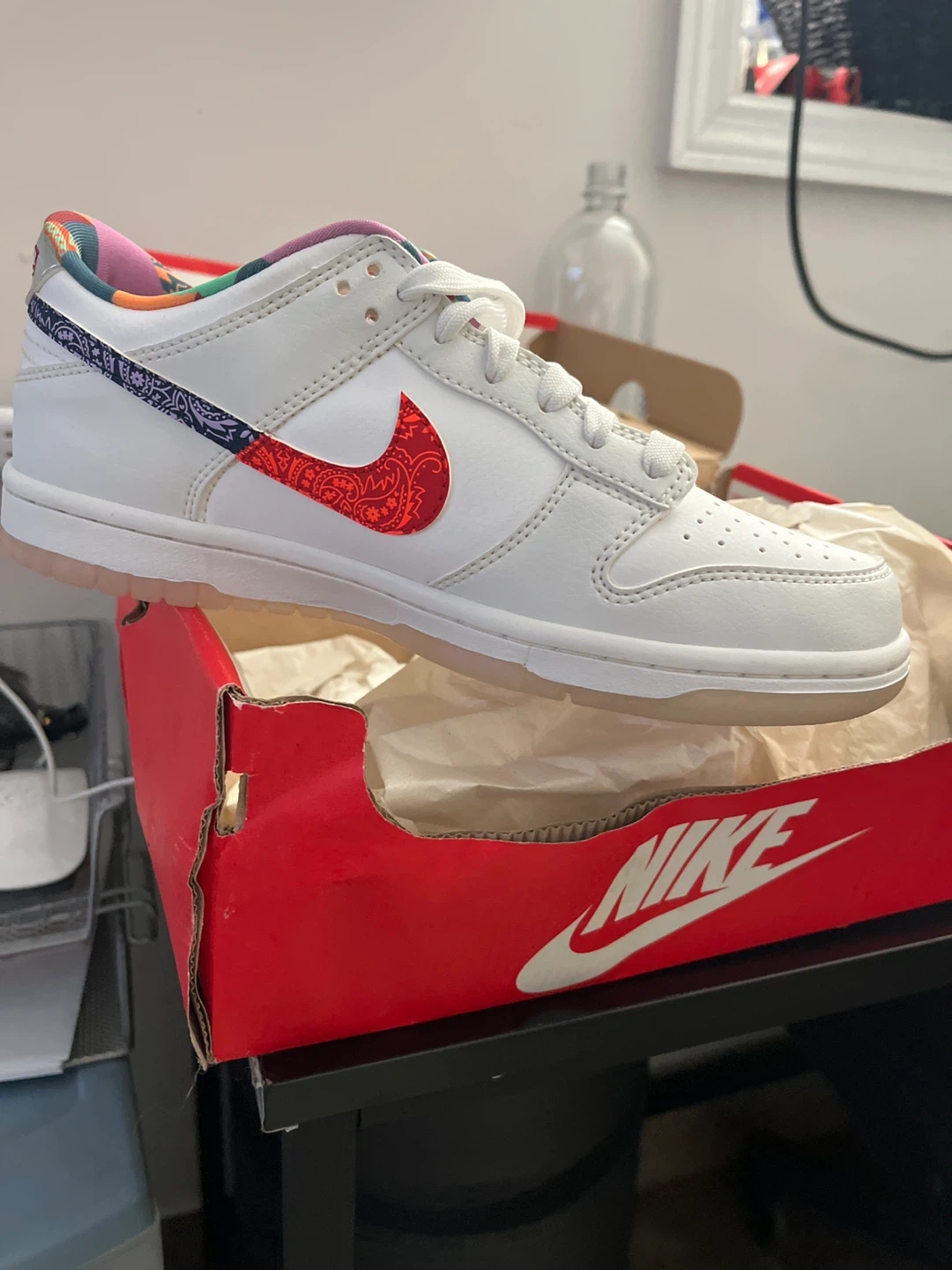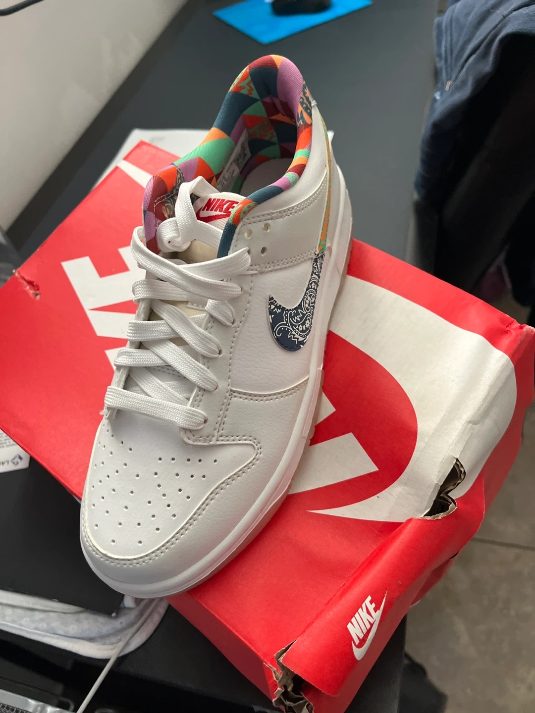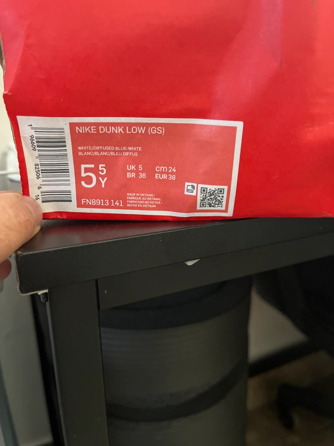 10Selling a pair of Nike Dunk Low (GS) in White/Diffused Blue. They are size 5.5Y and come with the original box.