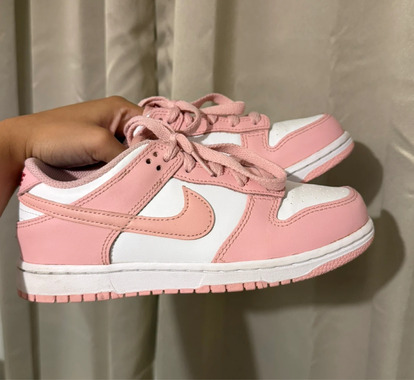 62Selling a pair of Nike Dunk Lows in a baby pink and white colorway! They're in great condition only worn twice. They are a little kids size 2.5