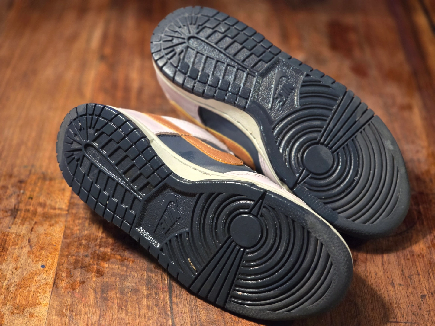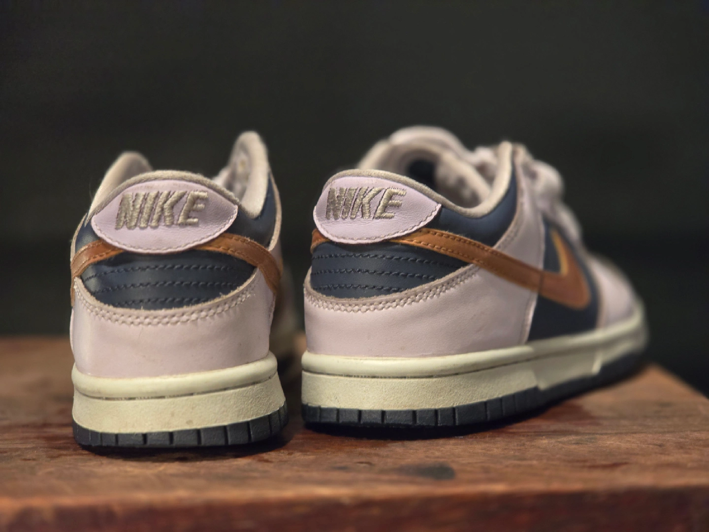 Selling a pair of Nike Dunk Lows in a purple and gold colorway. These are in good condition and ready for a new home!