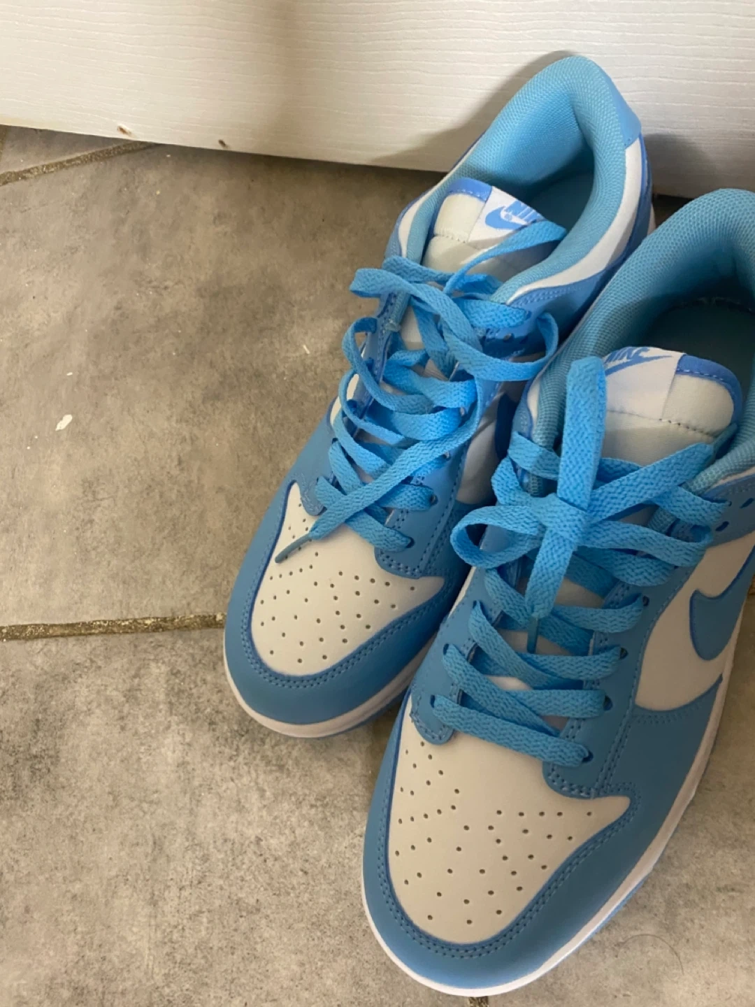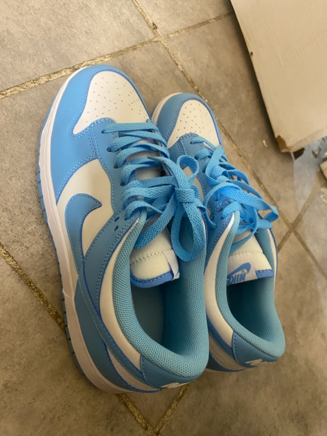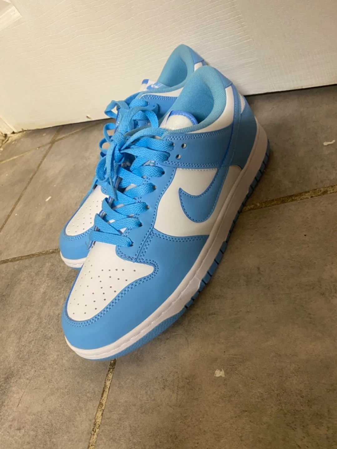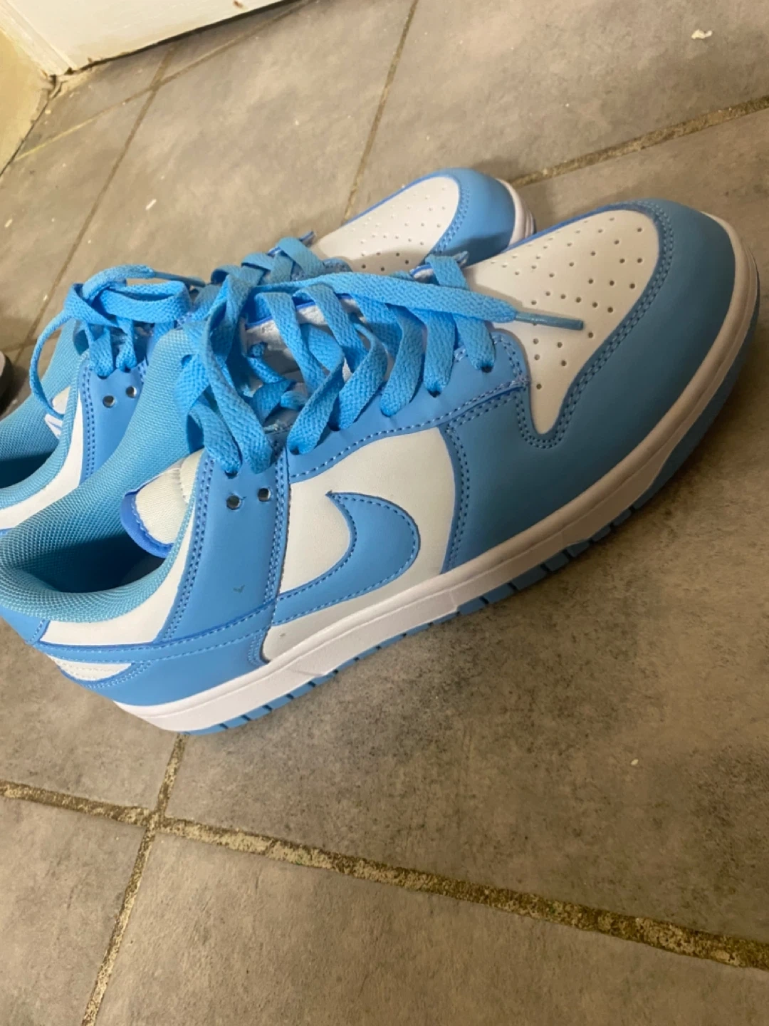 Selling a pair of Nike Dunk Lows in the UNC colorway. They are in great condition and ready for a new home! The iconic design and comfortable fit make them perfect for everyday wear.