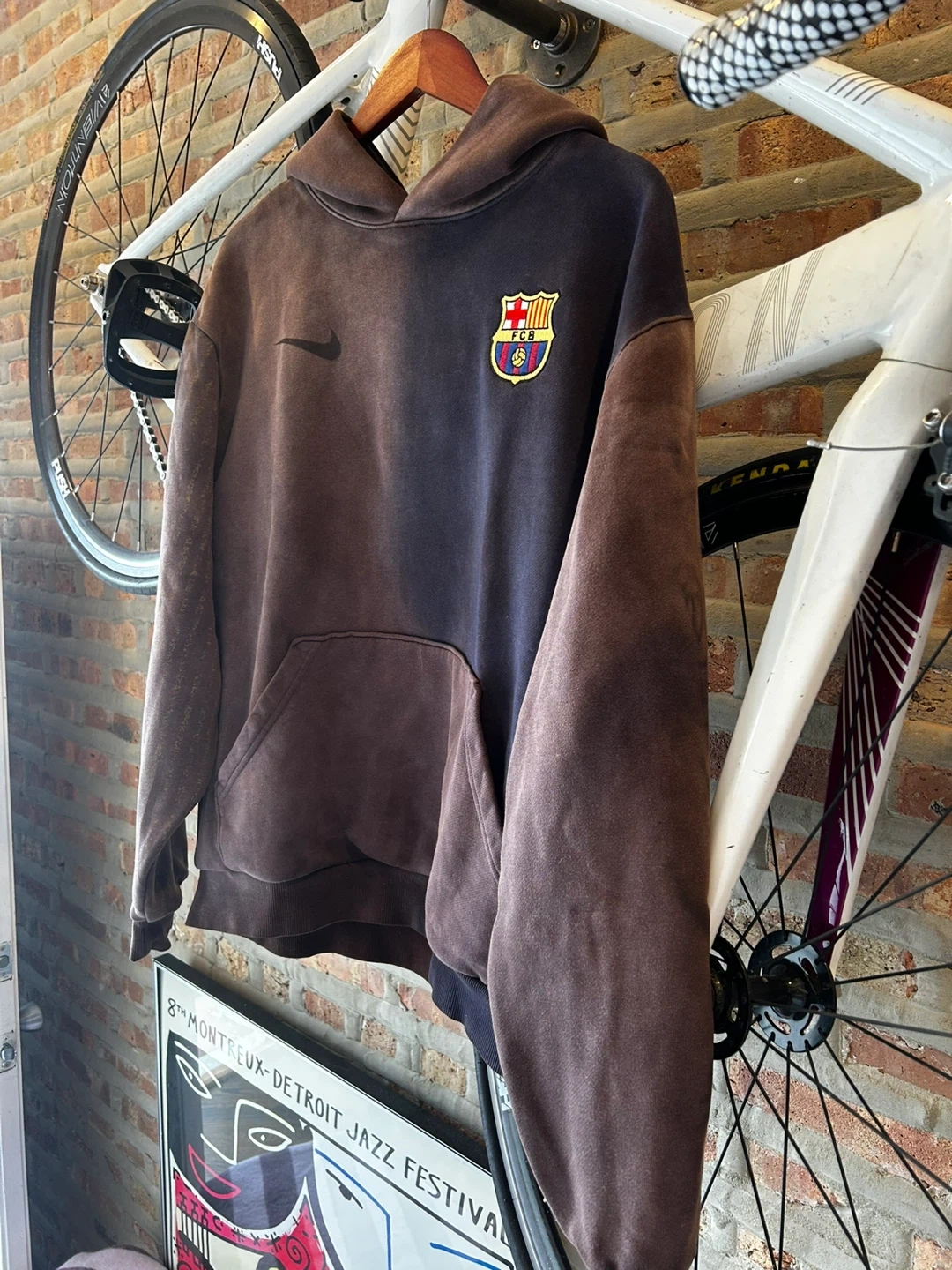 60Selling a Nike FC Barcelona X Cactus Jack hoodie in a unique brown color. It features the FC Barcelona logo and a Nike swoosh. This hoodie is perfect for any fan!