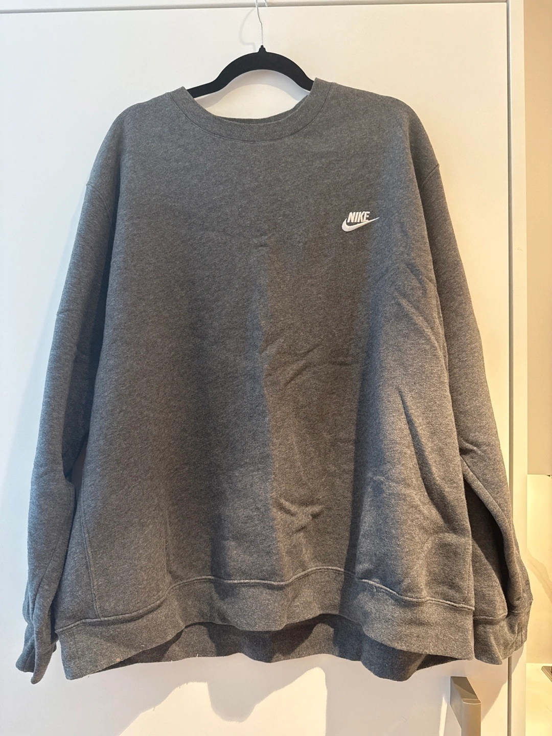 15Selling a gray Nike sweatshirt. It's in great condition and ready for a new home! The Nike logo is embroidered on the upper left side.