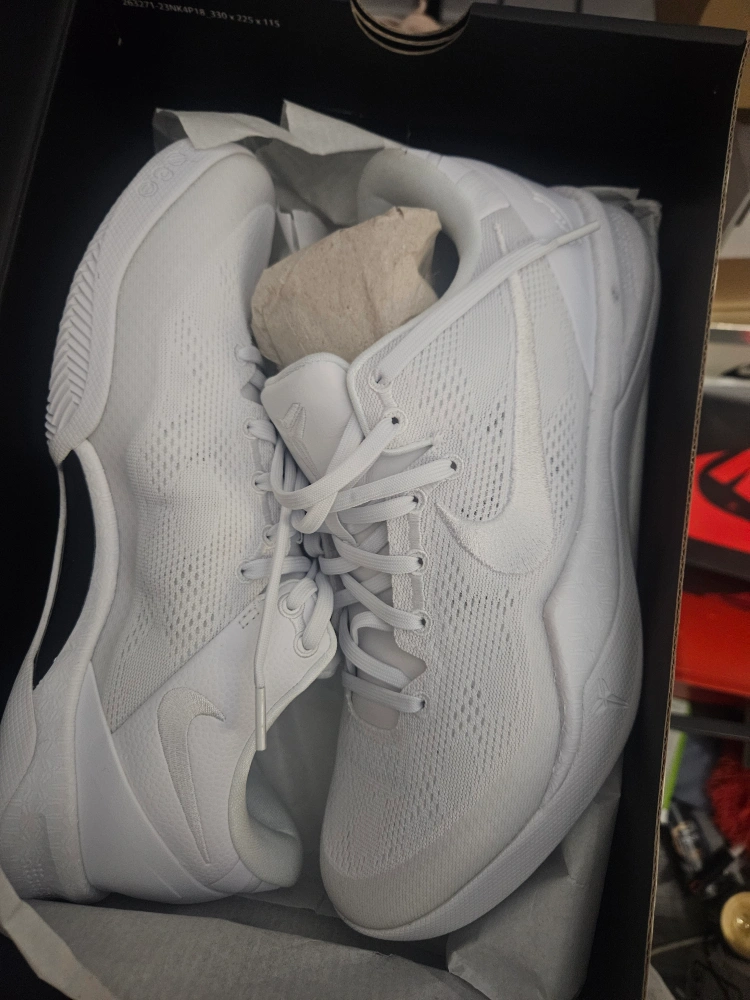 10Selling a pair of Nike Kobe 9 EM Low sneakers in white. They come with the original box. Perfect for basketball or casual wear!