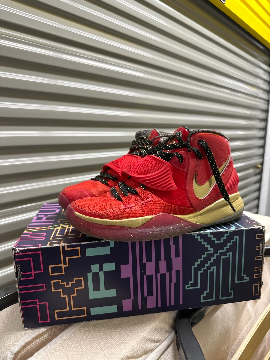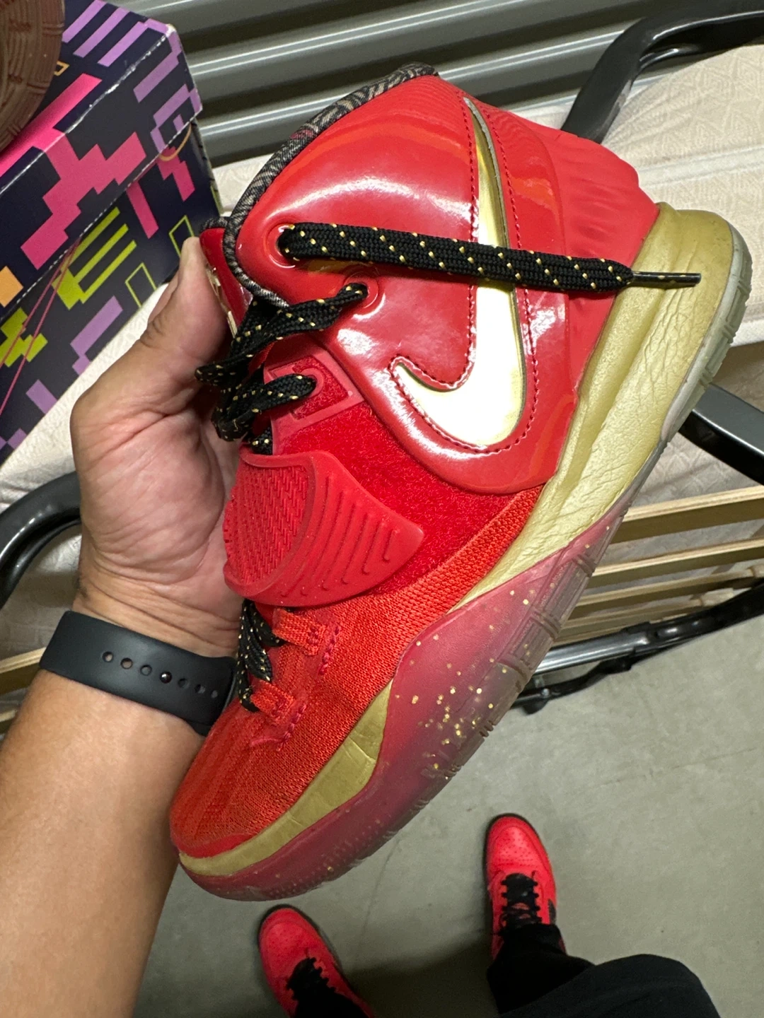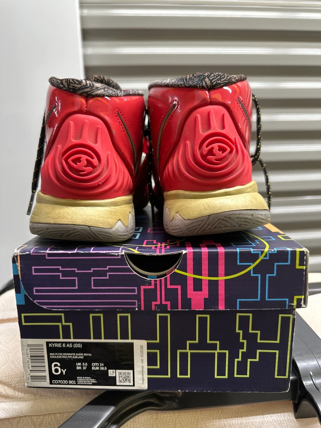 Selling a Legendary pair of Nike Kyrie 6 AS (GS) in a striking red and gold colorway. These are a size 6Y and come with the original box. The suggested retail price was $110.00. They are in good condition and ready for a new home!