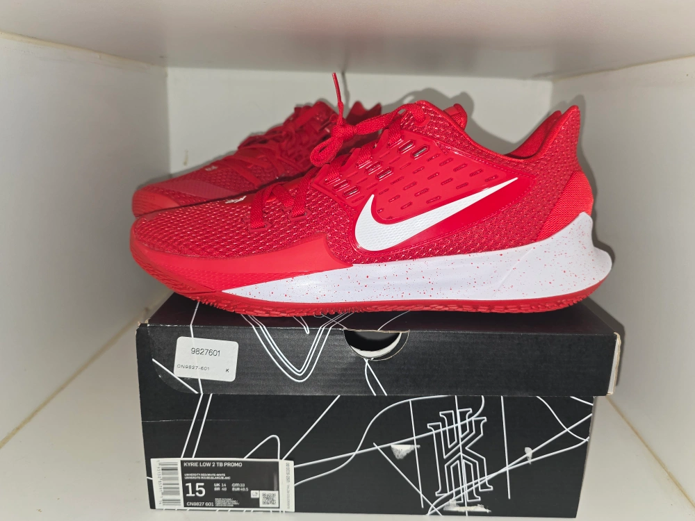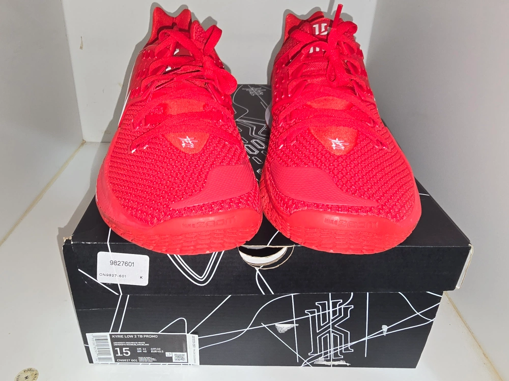 60Selling a pair of Nike Kyrie Low 2 TB Promo sneakers in red, size 15. The shoes come with the original box. brand new