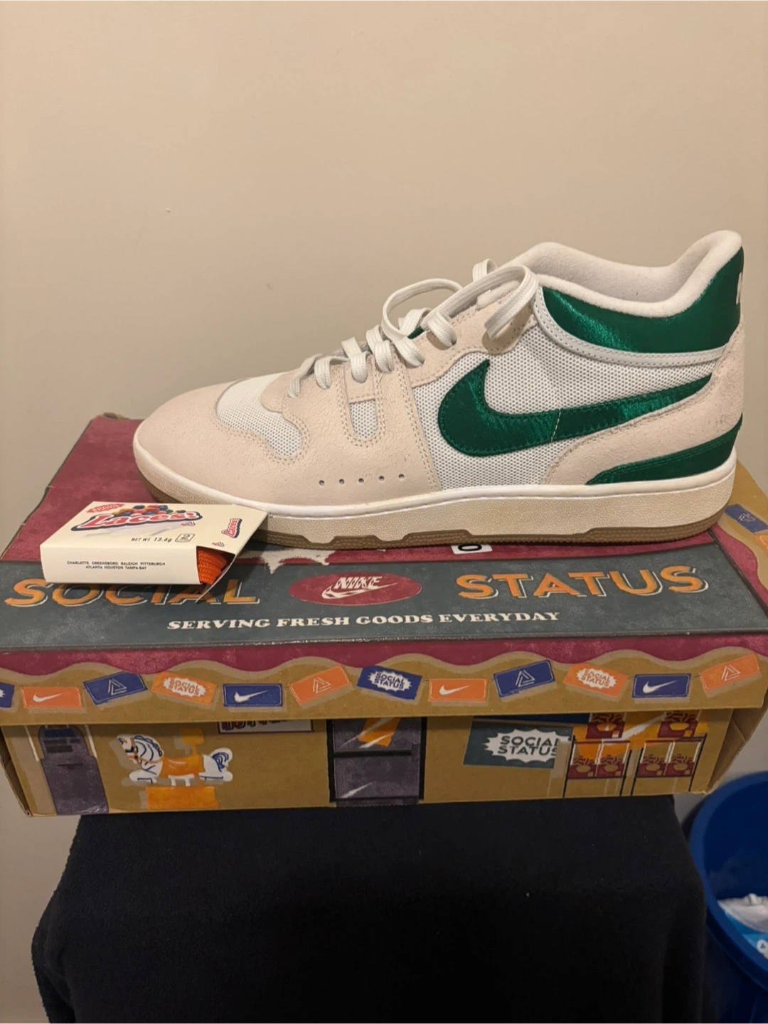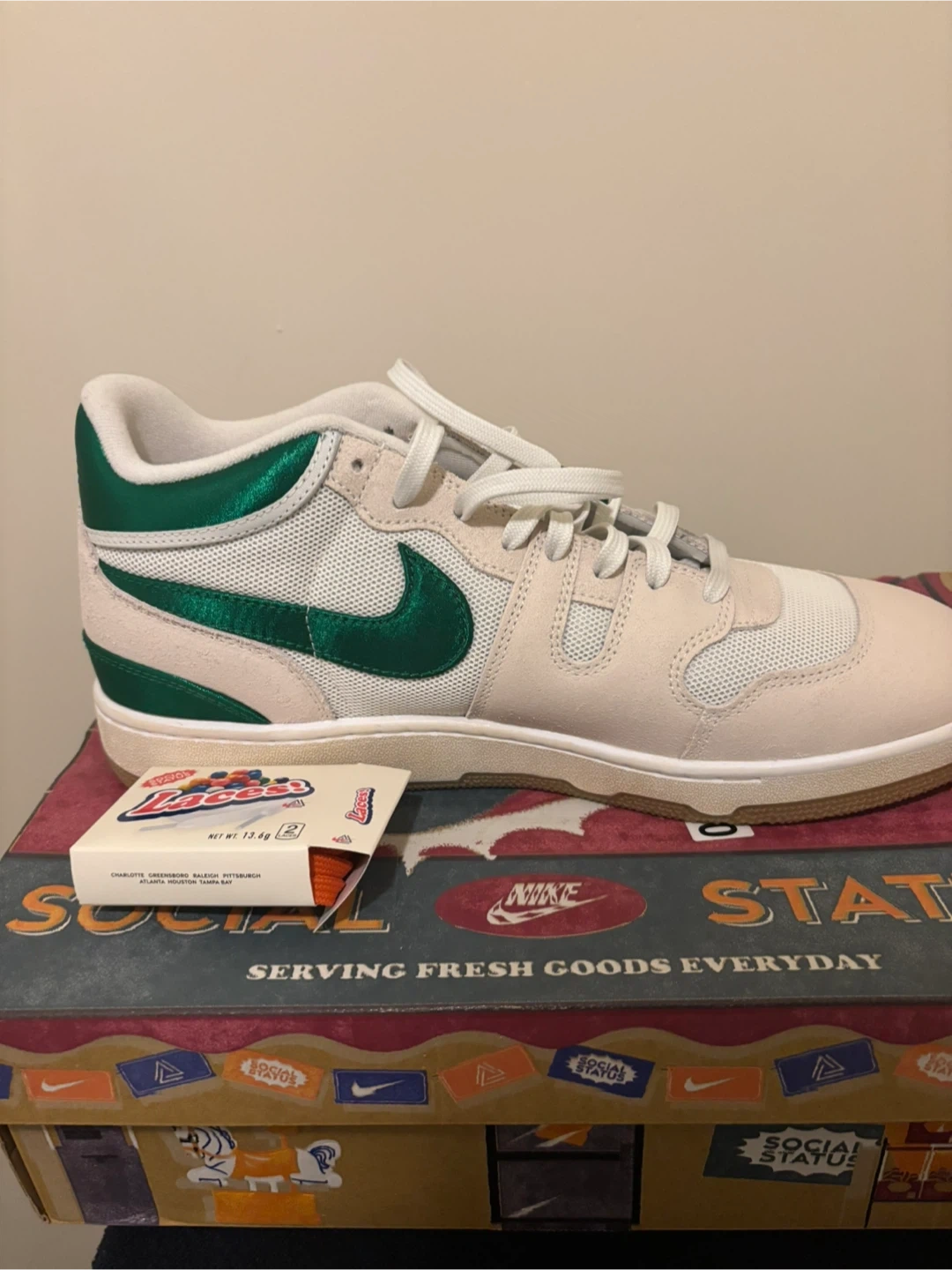 Selling a pair of Nike Mac Attack Social Status shoes! These sneakers come with the original box. They feature a clean design with green accents. Great for casual wear or adding a stylish touch to your outfits