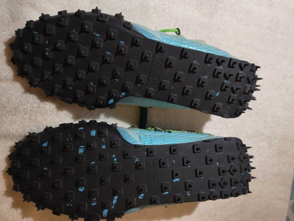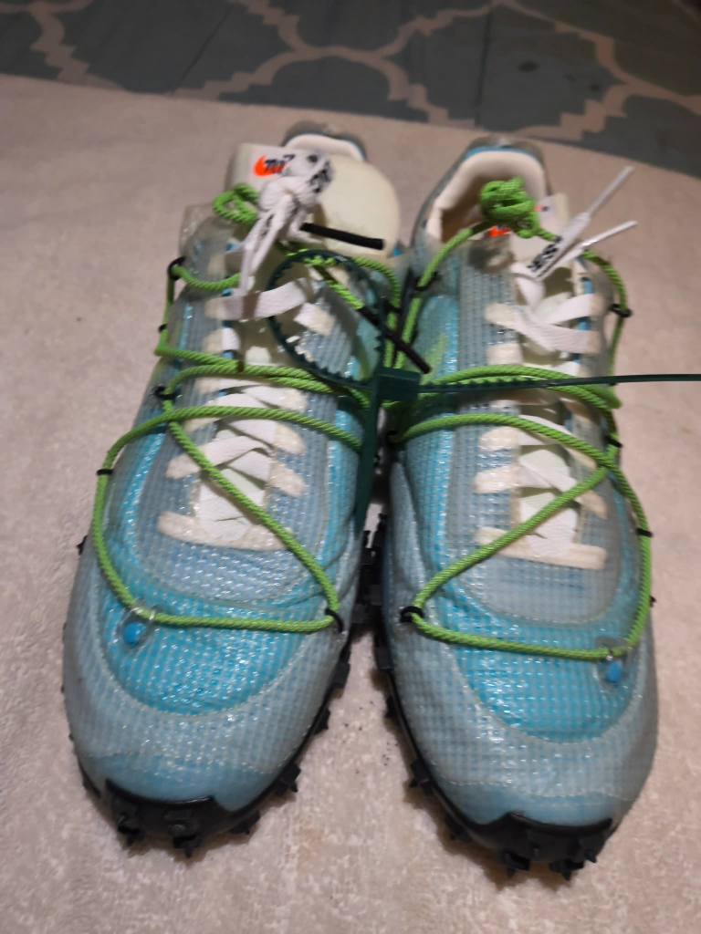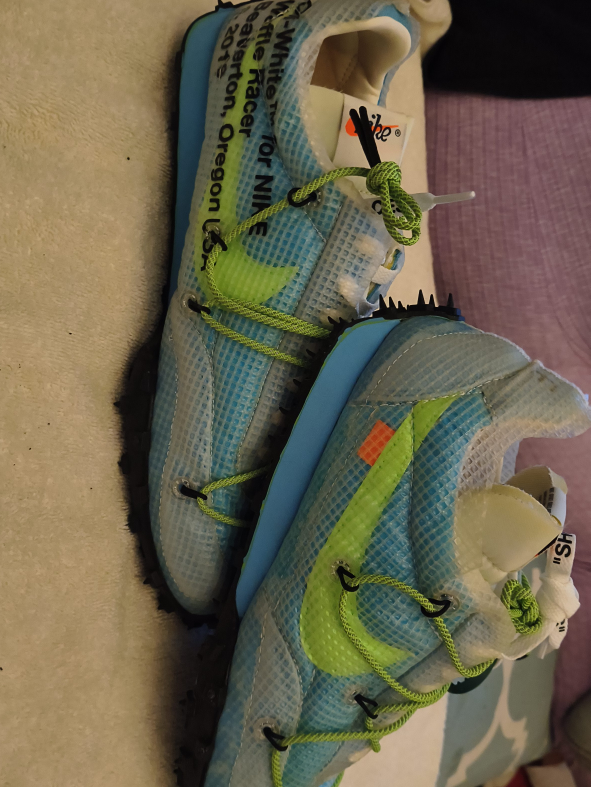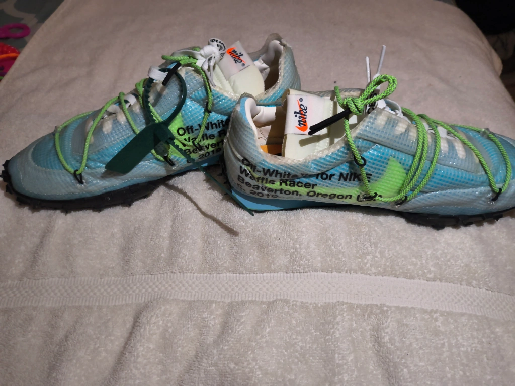 Selling a pair of Nike Off-White Waffle Racer shoes. These have a distinctive design with a translucent upper and unique lacing system. The uppers are in great condition. Perfect for adding a statement piece to your wardrobe! worn once maybe twice. Sorry no box