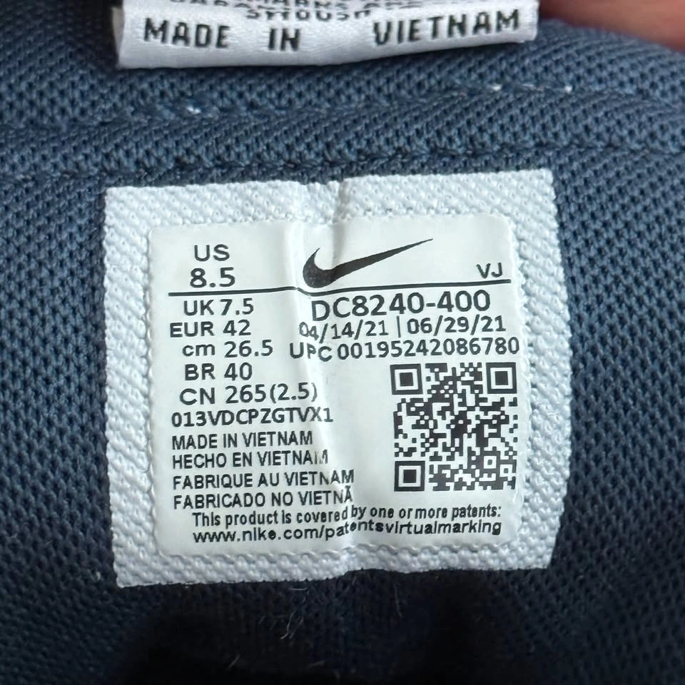 Used Nike Overbreak SP Navy Blue Sneakers size 8.5, DC8240-400. I wore them a couple of times. Please note that the tip of the right foot is yellowing. Men: 8.5 Euro: 42