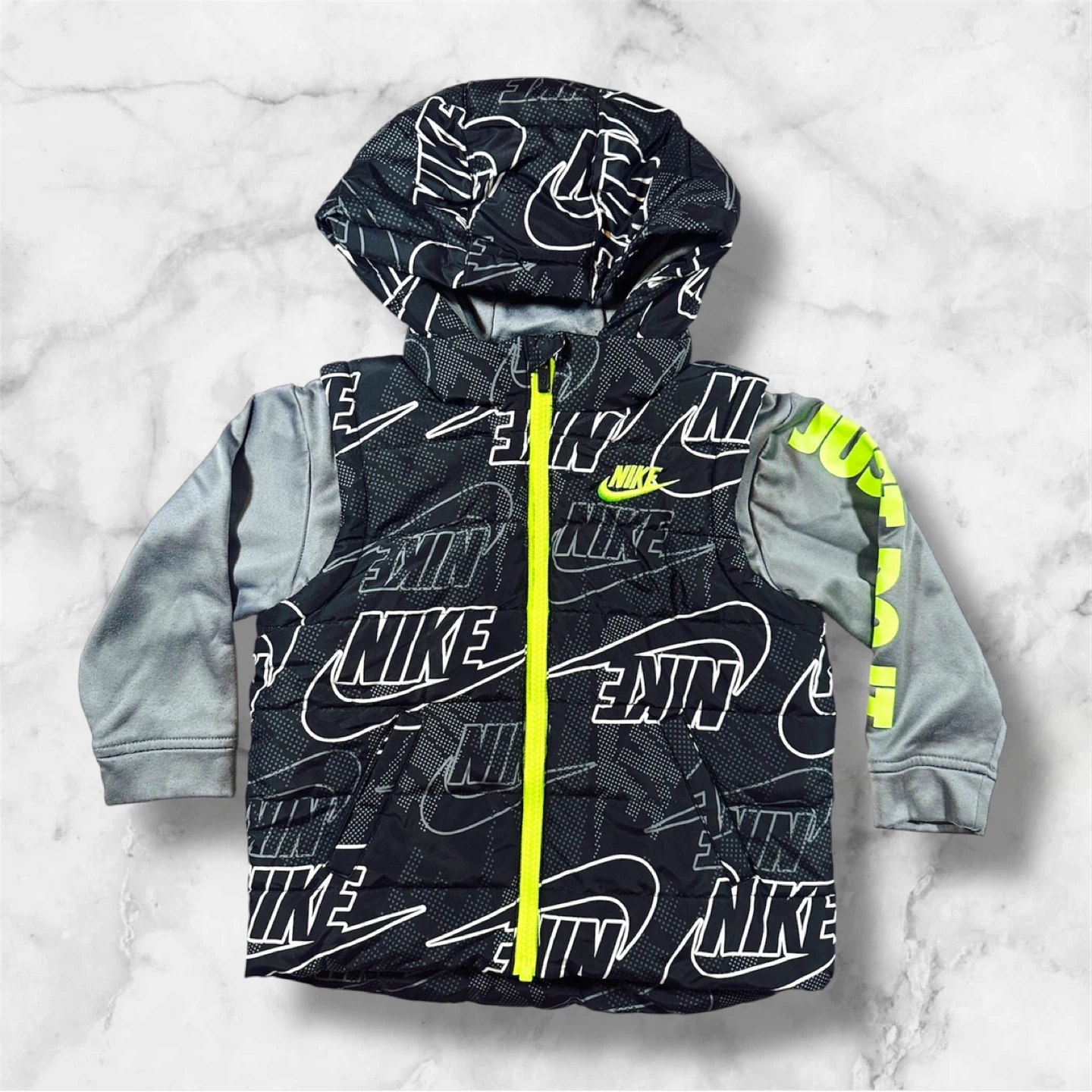 10Selling a Nike puffer jacket in size 3T! It's in great condition and features a cool all-over Nike logo print. Perfect for keeping your little one warm and stylish. * Size 3T (2-3 Years) * Great for Fall/Winter/Spring * Hooded * 2 Side Pockets * Zipper Closure