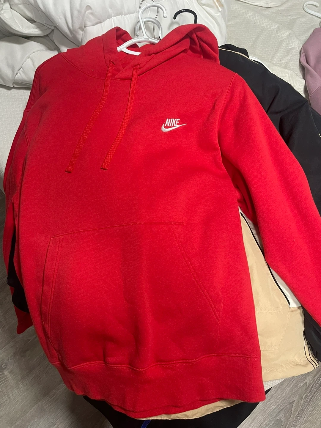 Selling a red Nike hoodie. It's in great condition and ready for a new home! Perfect for staying cozy.