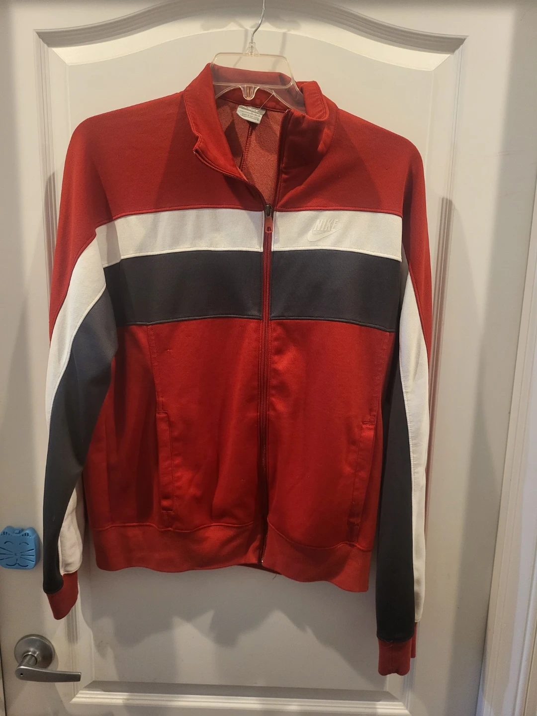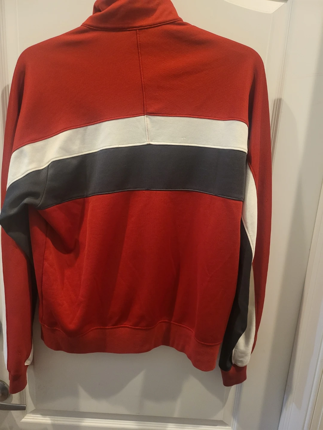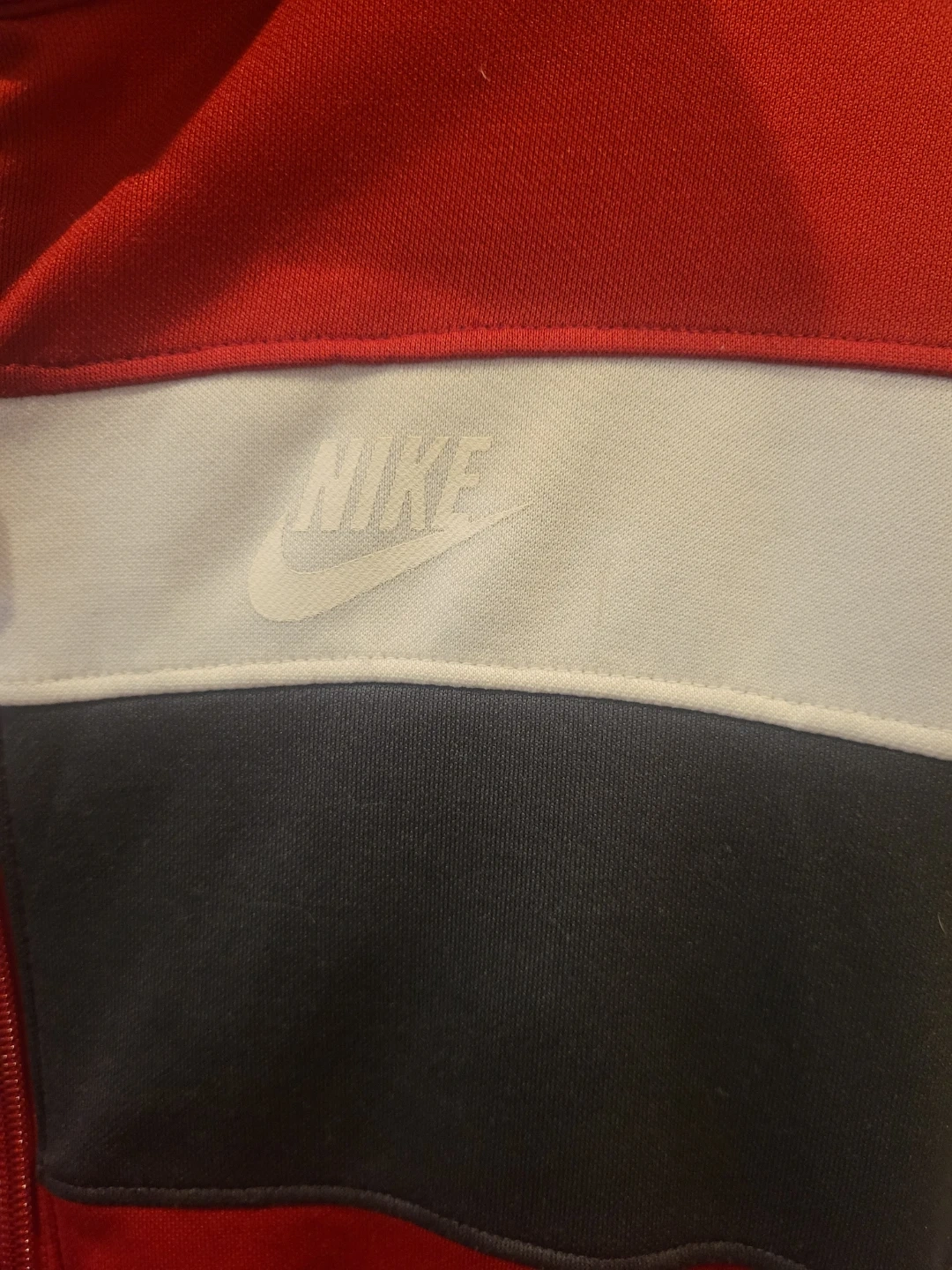 76Selling a Nike track jacket in red, white, and black! It's in great condition and ready for a new home. Perfect for workouts or casual wear
