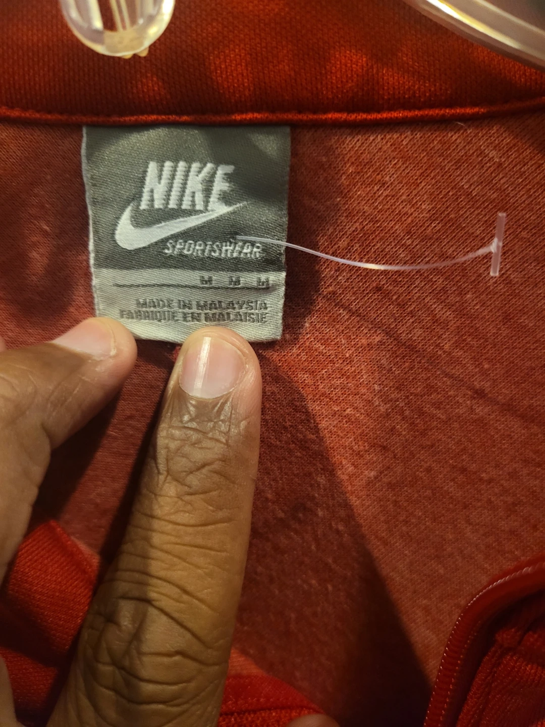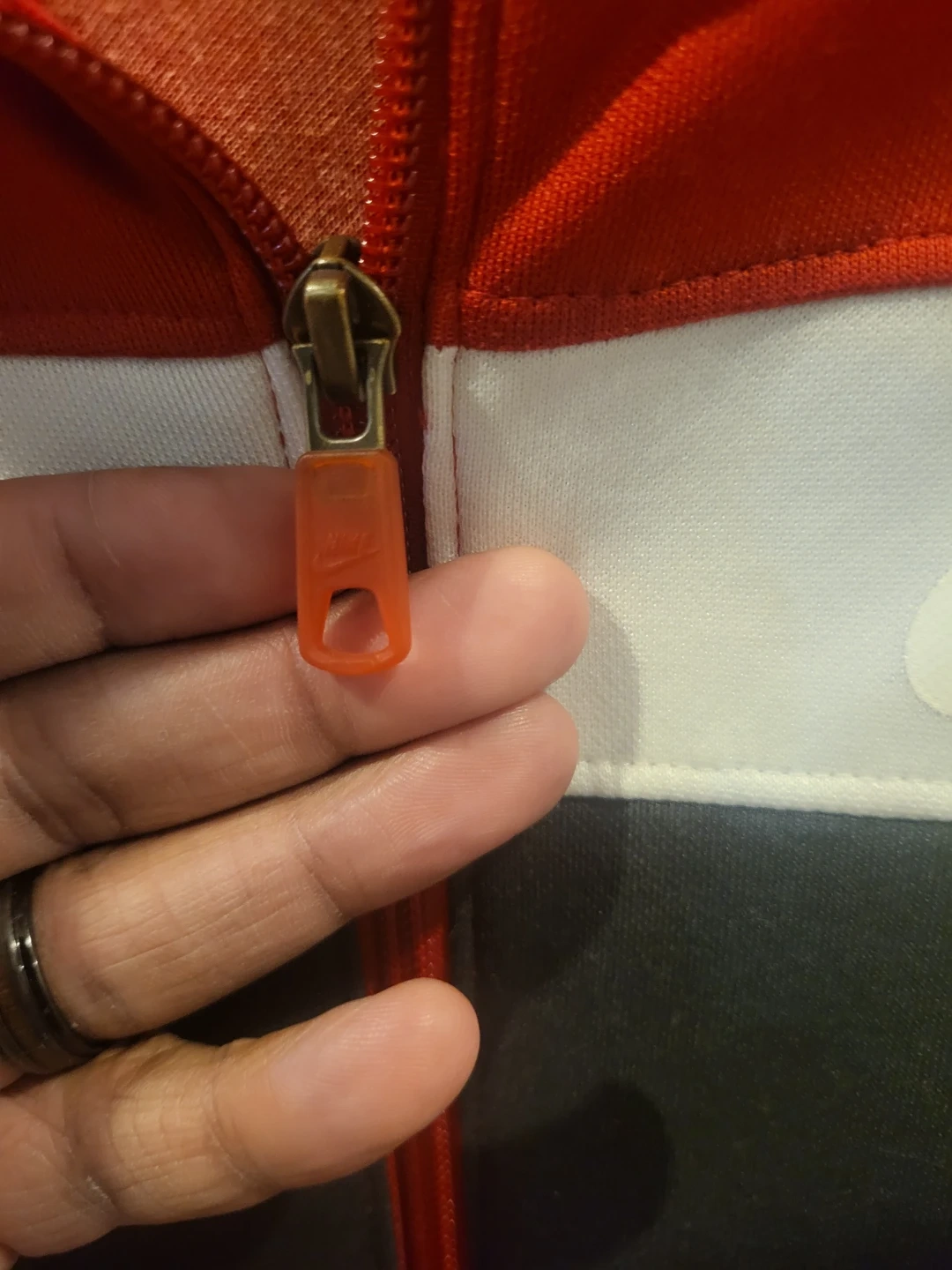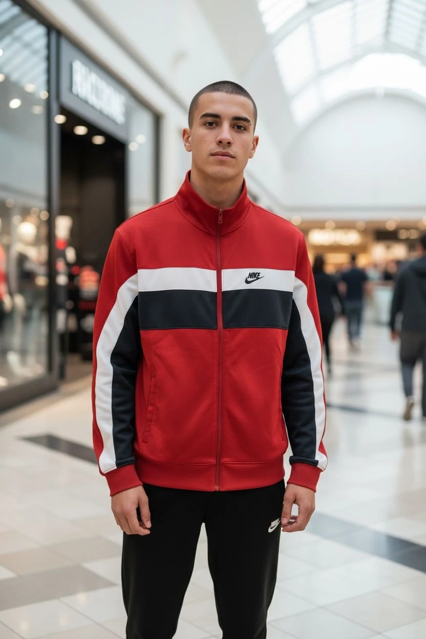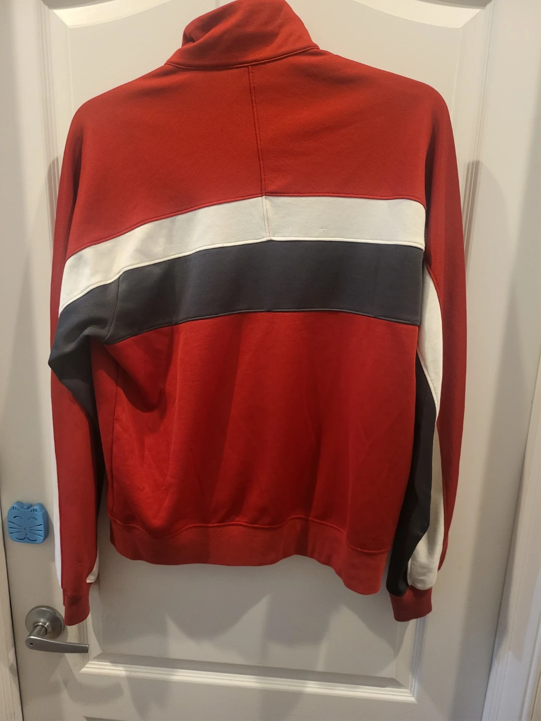 76Selling a Nike track jacket in red, white, and black! It's in great condition and ready for a new home. Perfect for workouts or casual wear