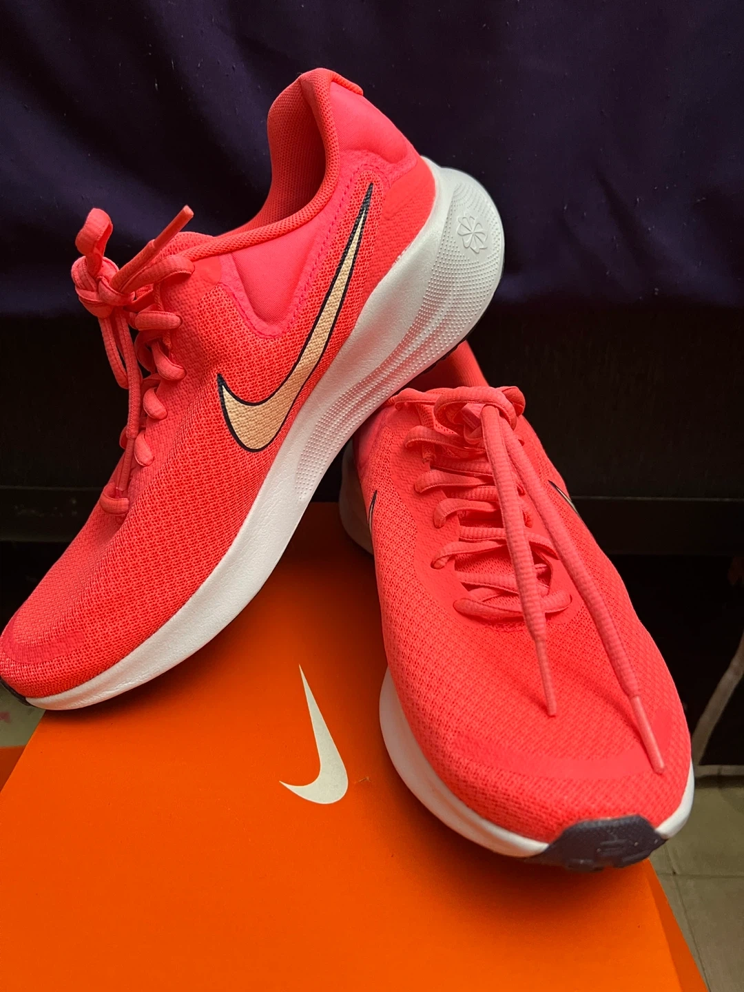 5Selling a pair of Nike Revolution 7 running shoes in a vibrant pink color! They are in great condition and ready for your next run or workout. These shoes are a women's size 8 US.