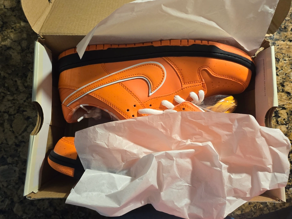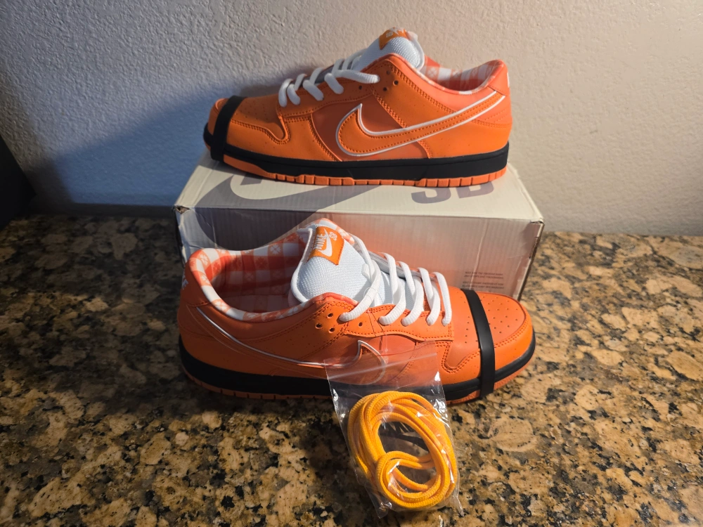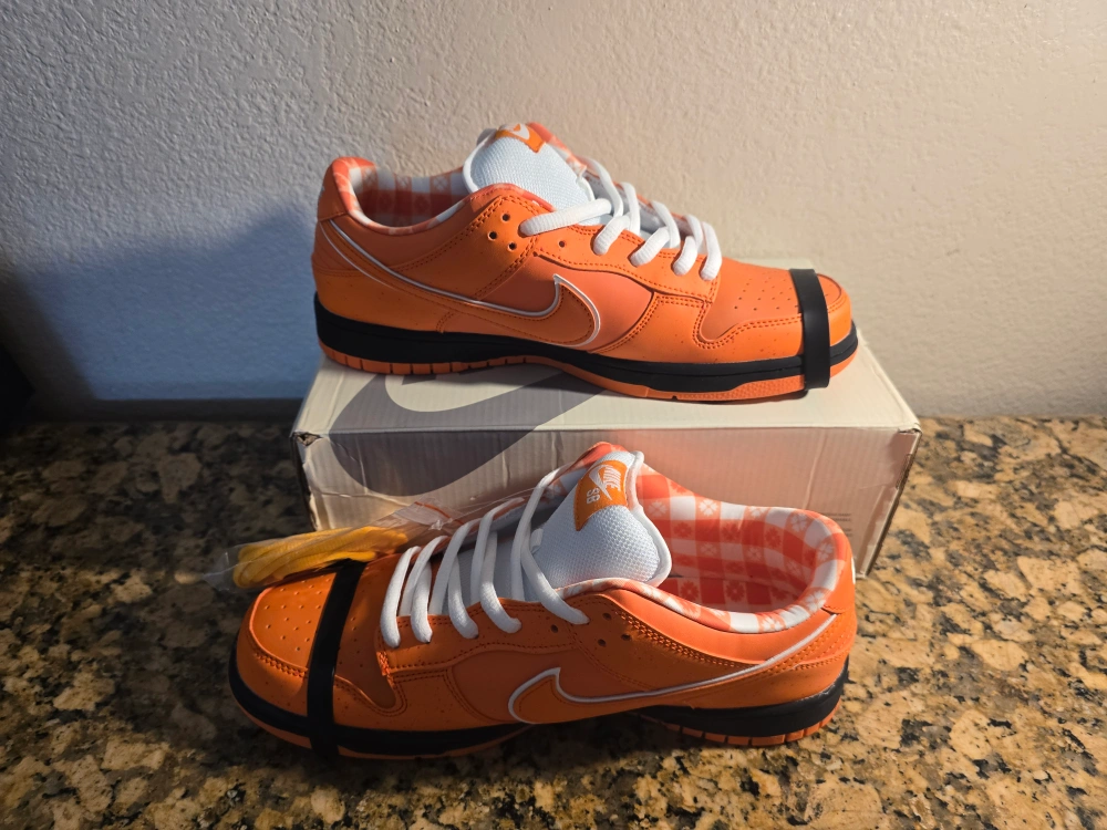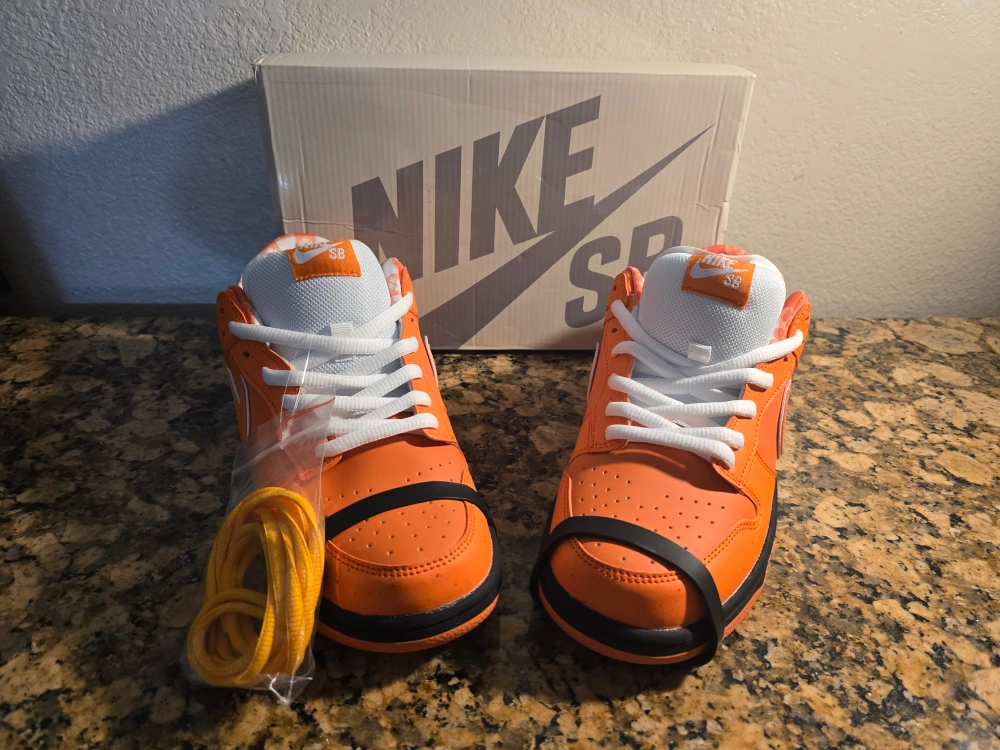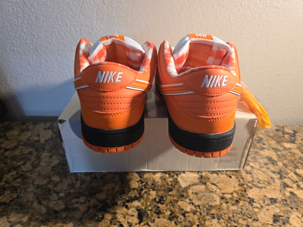 Selling a pair of brand new Nike SB Dunk Low Pro Orange Lobster.These come with the original box and an extra set of laces. They're a vibrant orange color with a black sole.