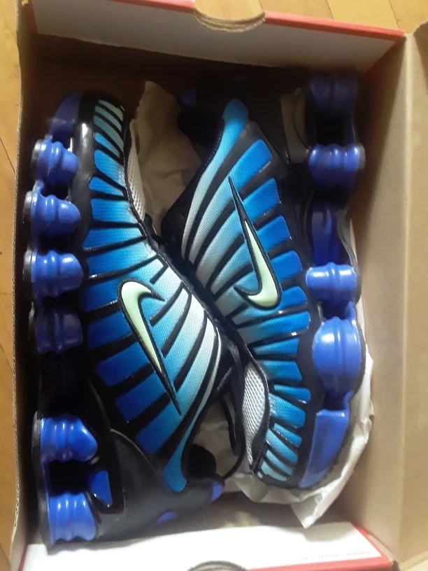 Selling a pair of Nike Shox TL in a striking blue and black colorway! These shoes come with the original box. They feature the iconic Shox cushioning system for a unique look and feel. Great for adding a bold touch to your style