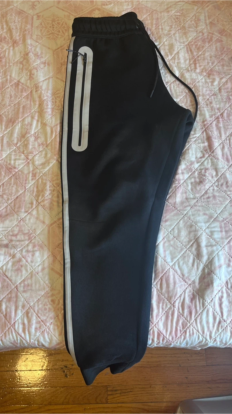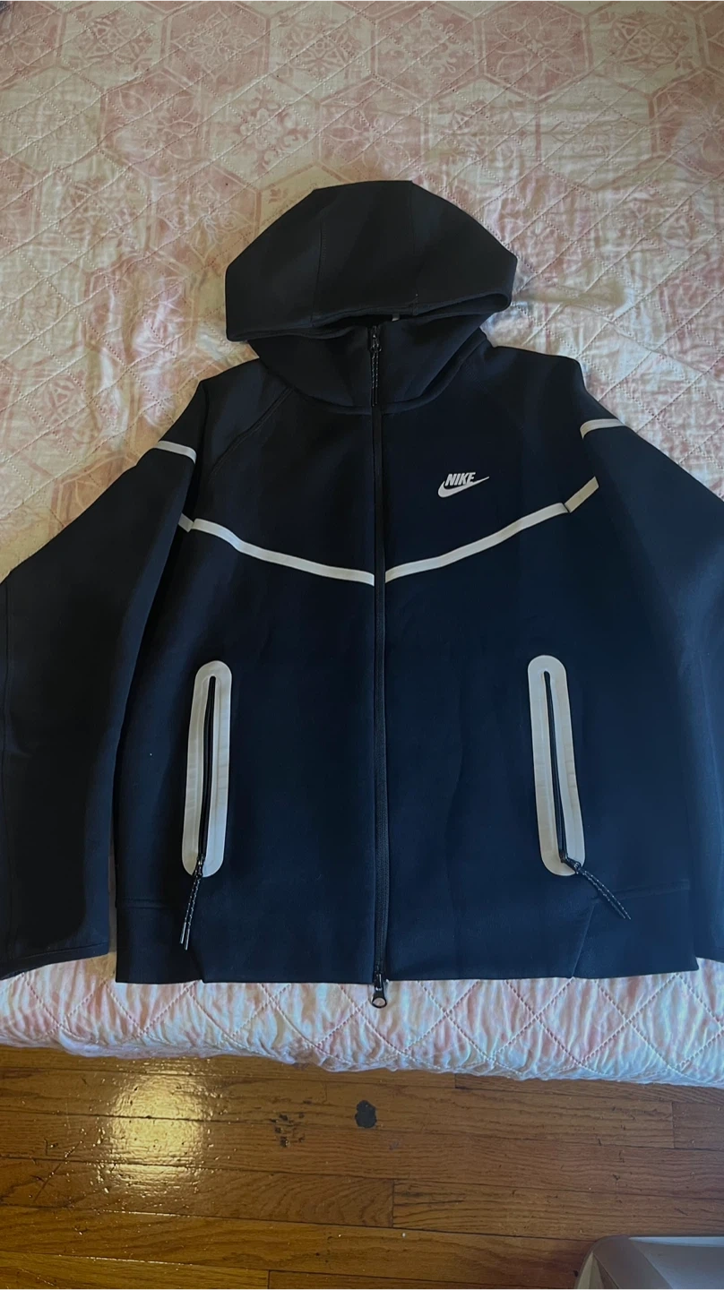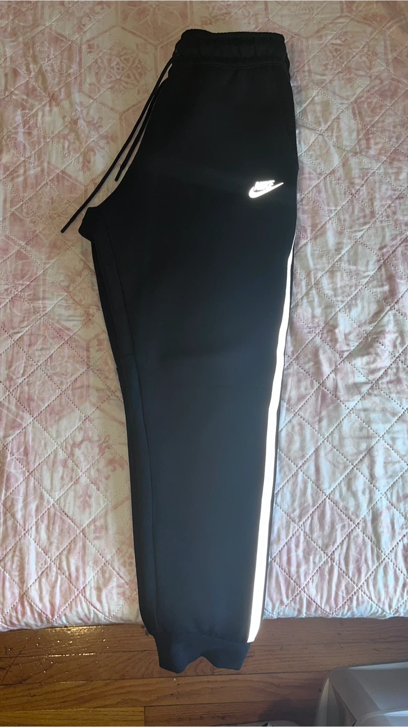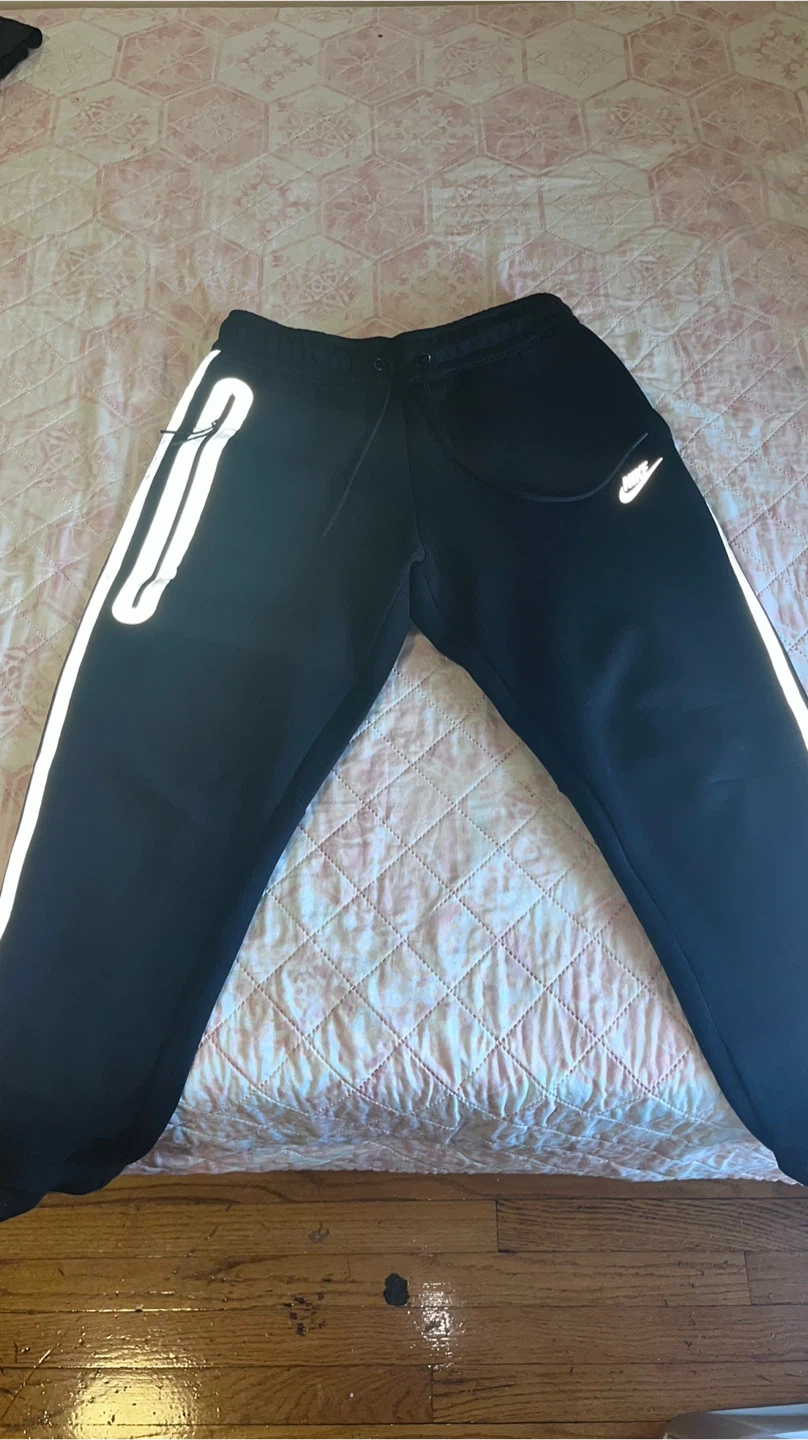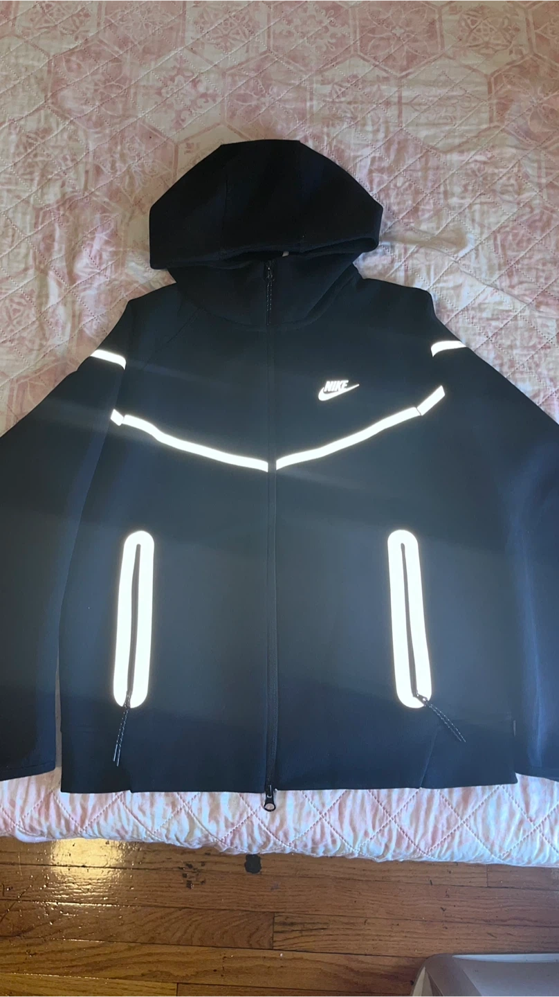 10Selling a Nike Tech Fleece set including both the hoodie and pants. The set is black with reflective detailing. Great for workouts or casual wear!