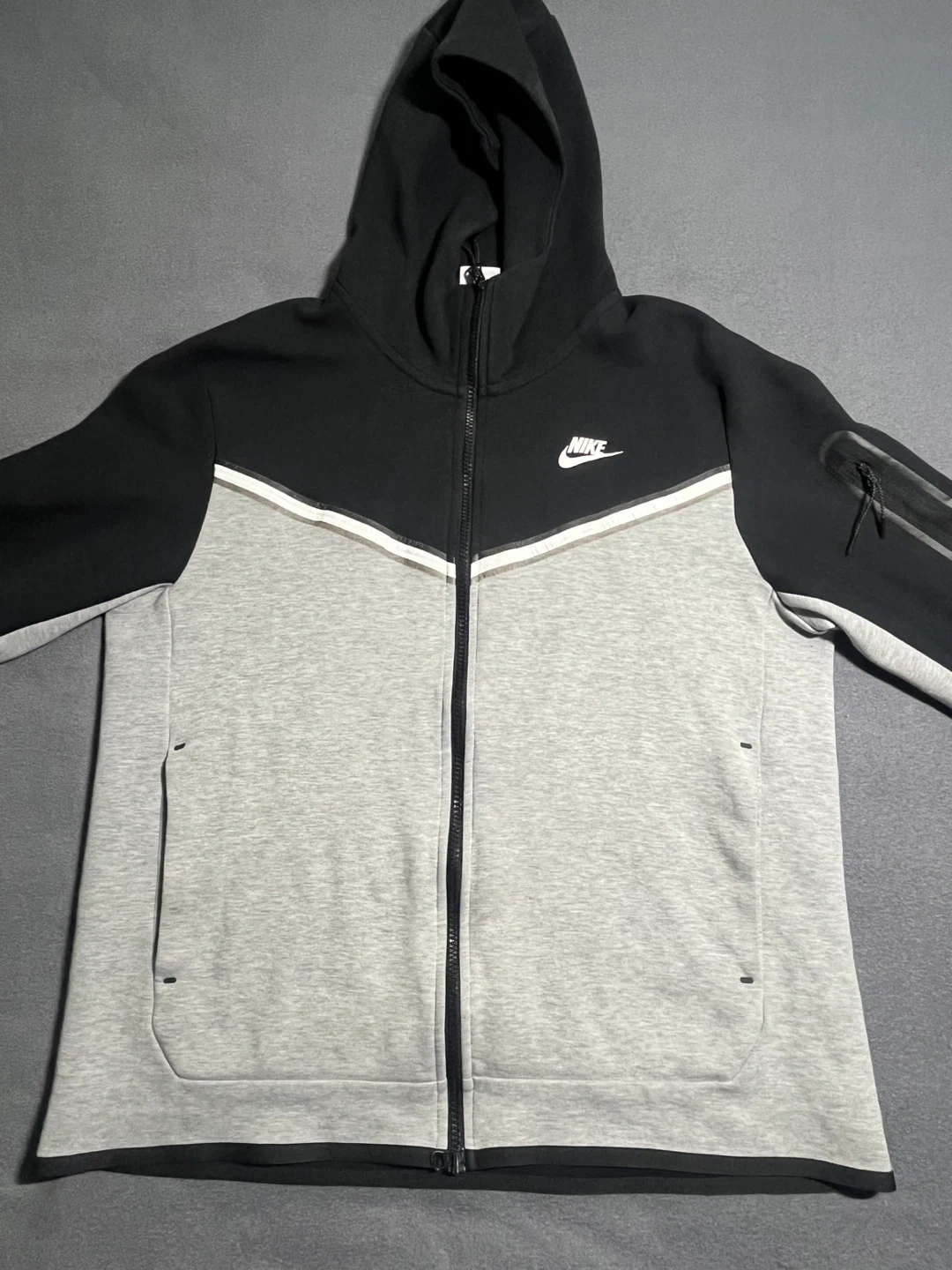 Selling a Nike Tech Fleece hoodie in size medium! It's a stylish and comfortable hoodie perfect for everyday wear. Features the iconic Nike swoosh logo.