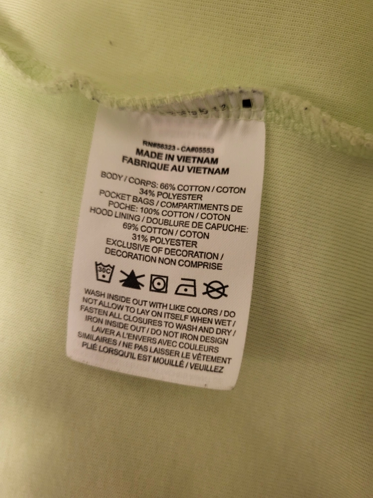 A light green hooded jacket. Features a zipper. Has a black trim. You could slip this jacket on and go for a relaxing walk. * It have little bit stains. If you have question ask me👍