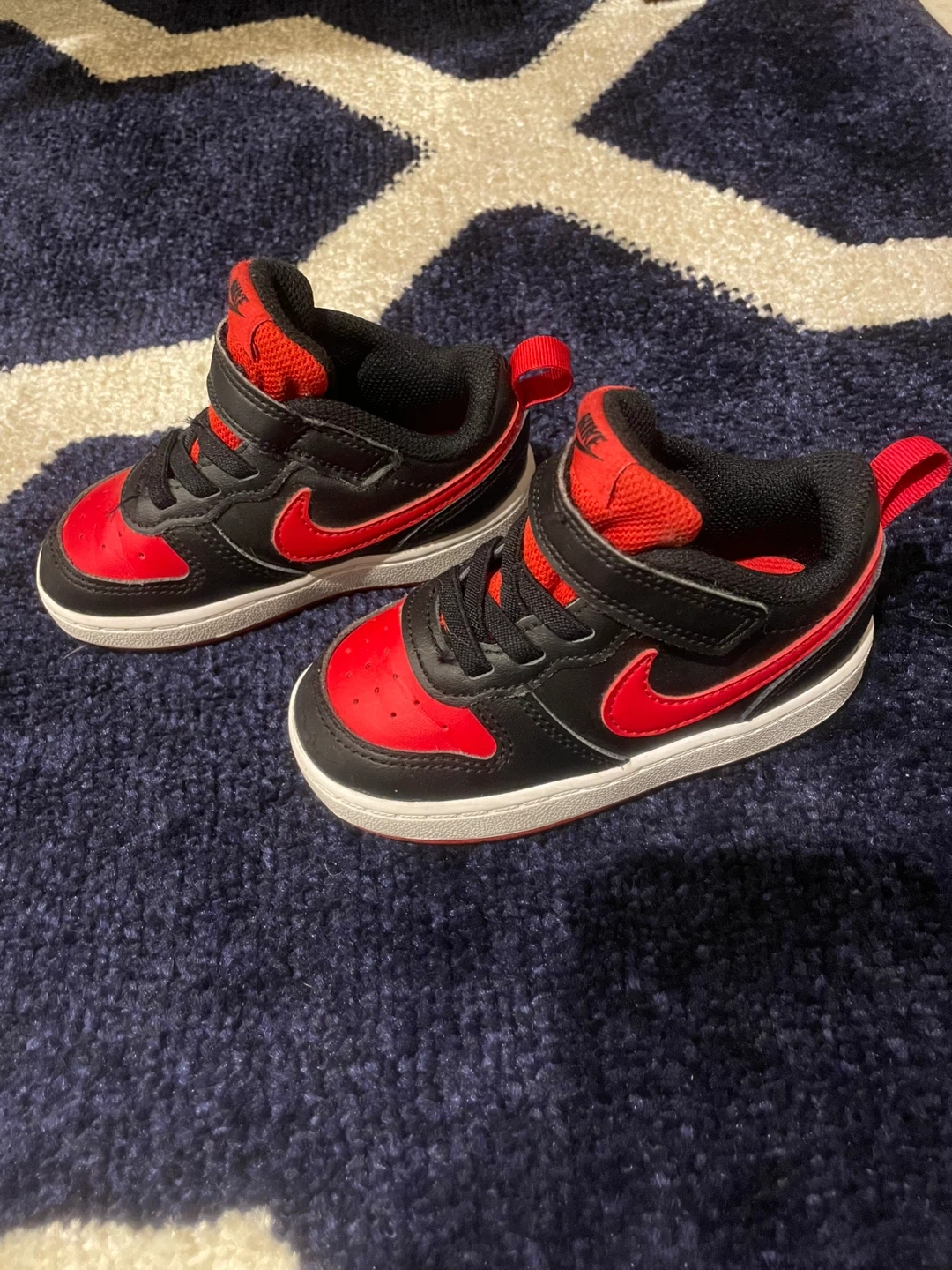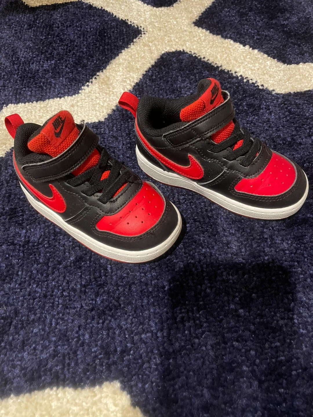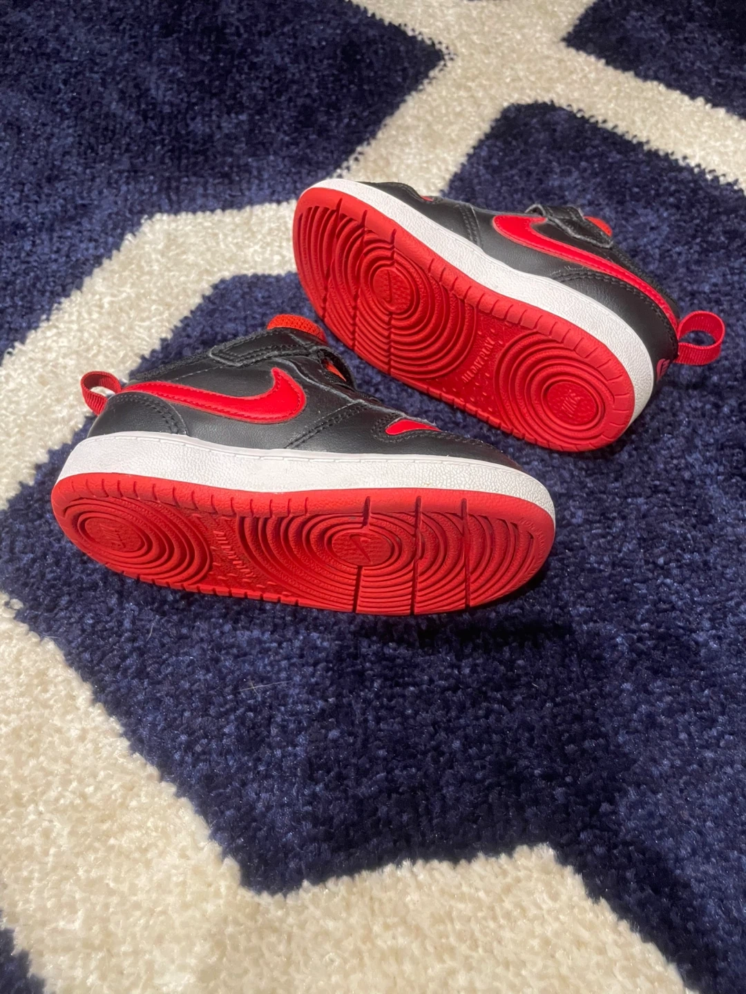 Nike Toddler Boy's Court Borough Low 2 Black/University Red/White Size 7C Worn once inside for a family gathering. In excellent, clean condition. Located in Staten Island, NY 10312. Local delivery available and can meet in some parts of Brooklyn for a small additional charge.