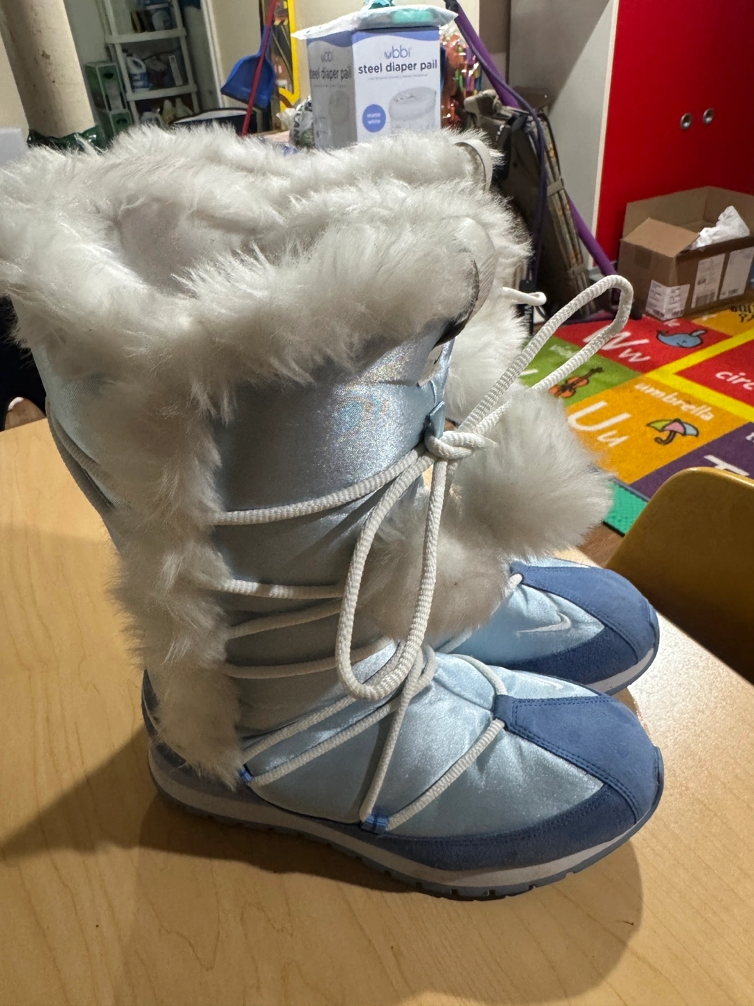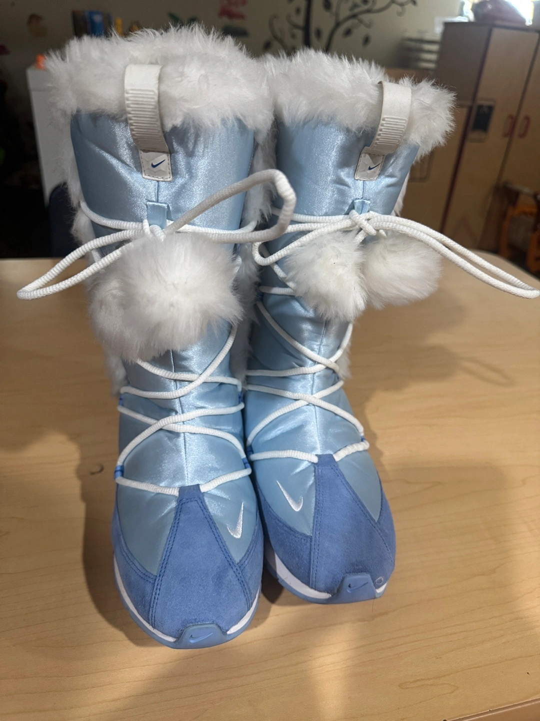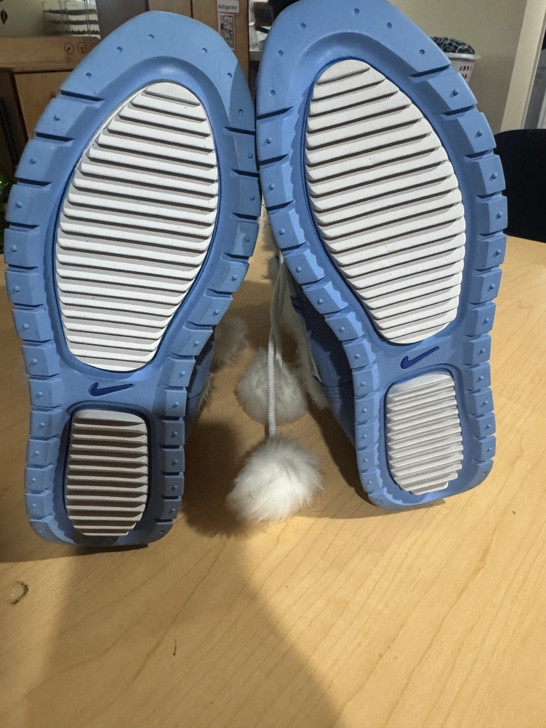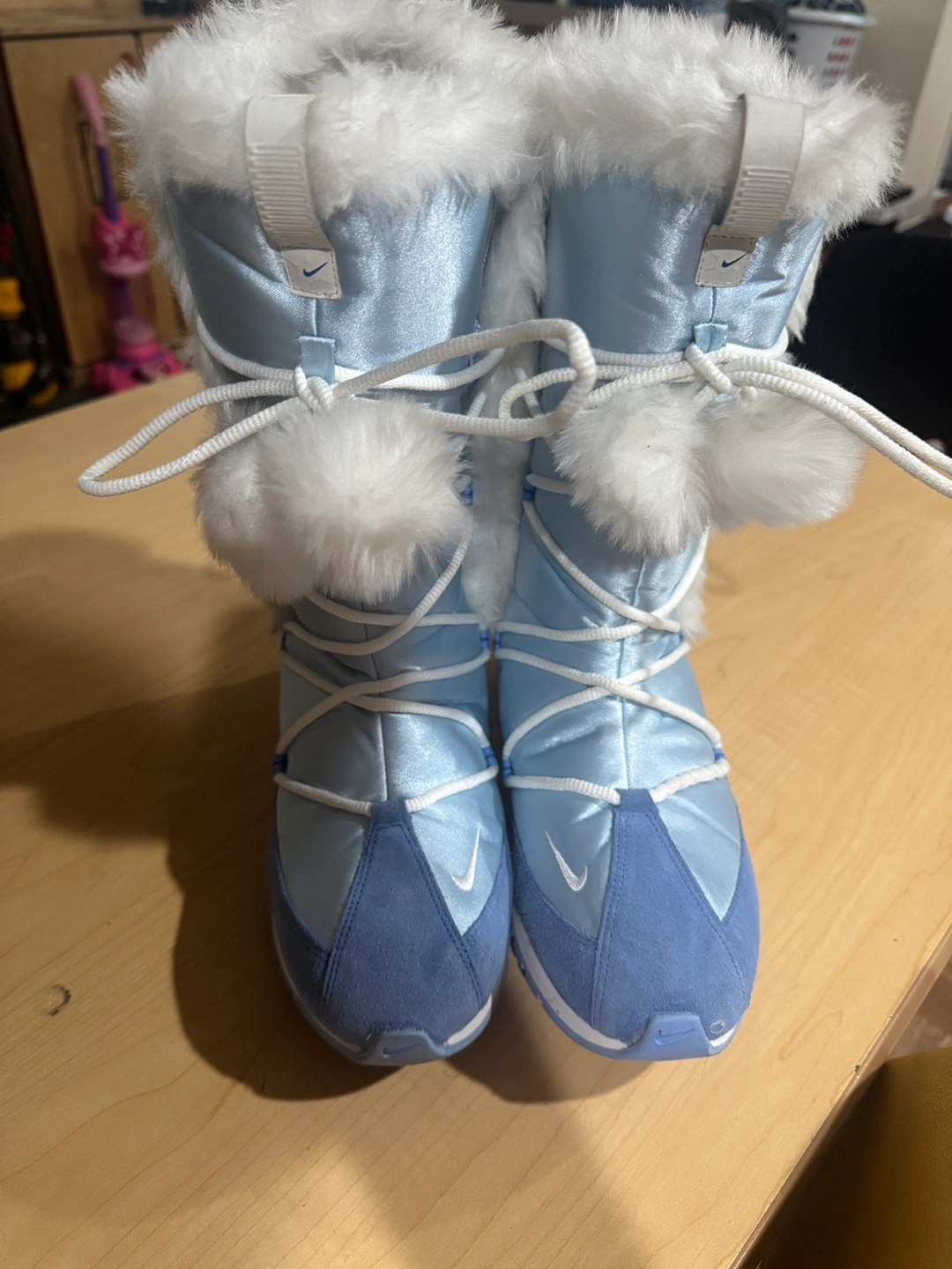 10New Nike winter books light blue. Never been worn. Suede material with white fur. Only tried on was a gift. No longer need them just sitting up