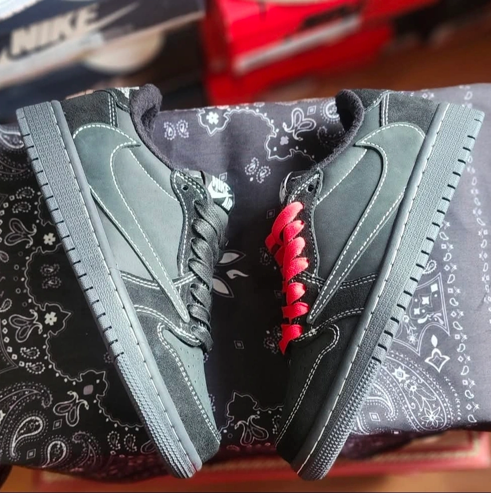 10Selling a pair of Nike x Travis Scott Air Jordan 1 Low "Phantom" sneakers! They come with the box and an extra set of red laces. These shoes are in great condition New