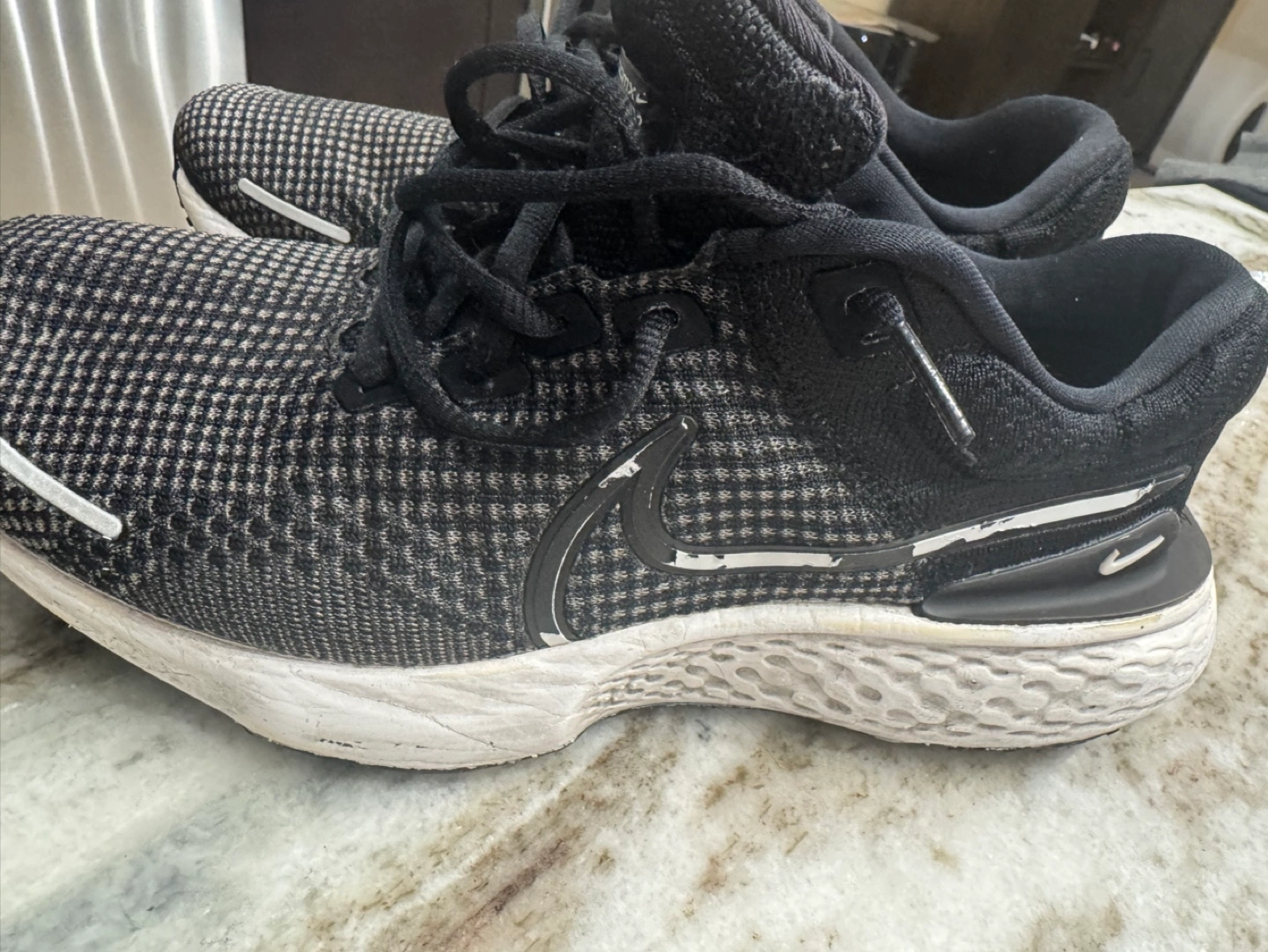 65Black and white running shoes. Good condition.have some peeling off on the Nike sign check pictures