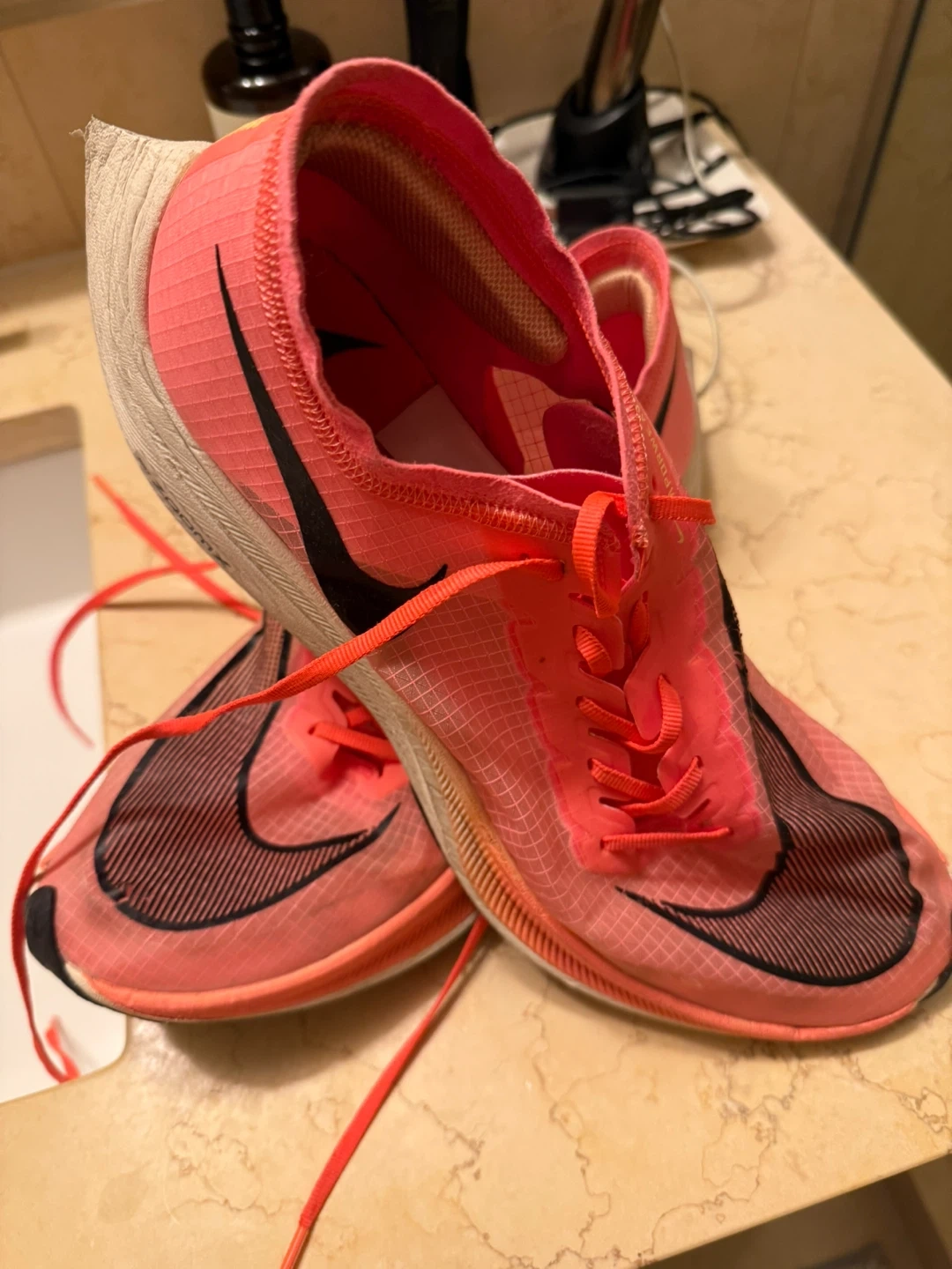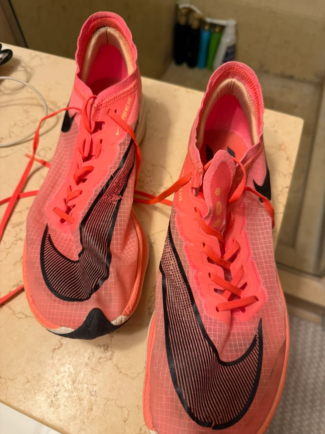 23Selling a pair of Nike ZoomX Vaporfly NEXT% running shoes! They are in used condition but still have plenty of miles left in them. The shoes feature the Nike ZoomX foam for lightweight and responsive cushioning. Perfect for your next race or training run! Size 12