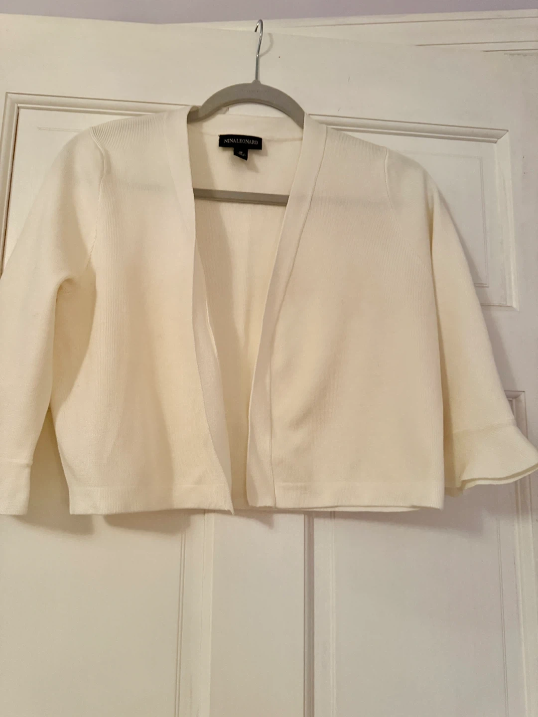 206Selling a cream-colored cardigan from Nina Leonard in size medium. It's in great condition and ready for a new home!