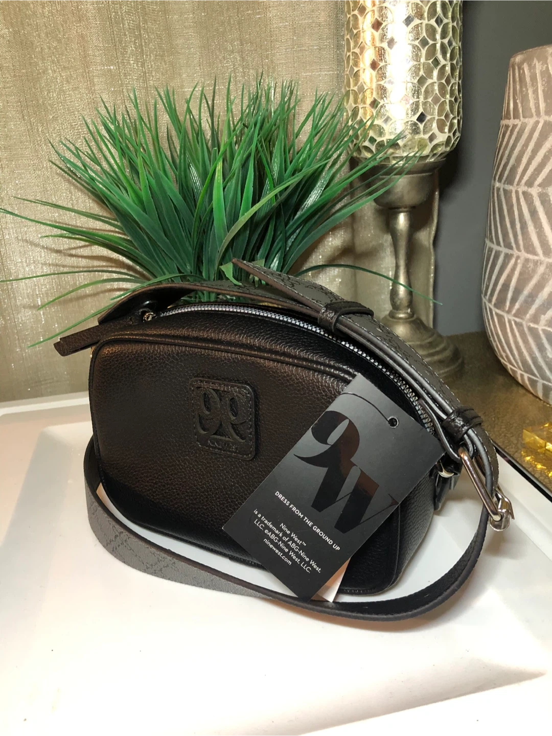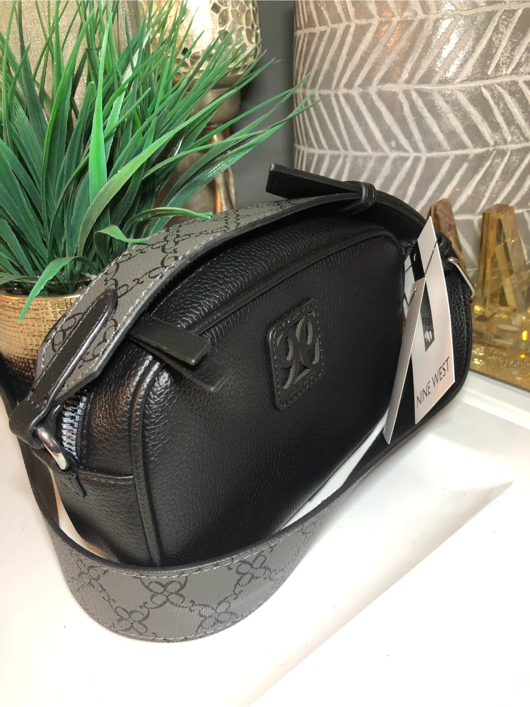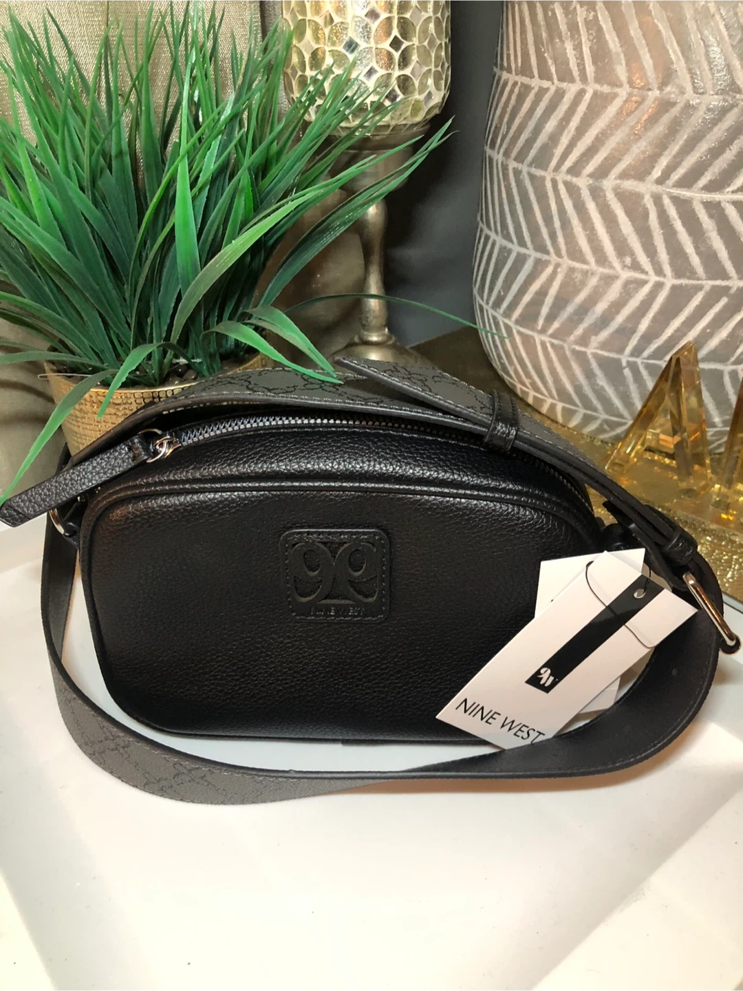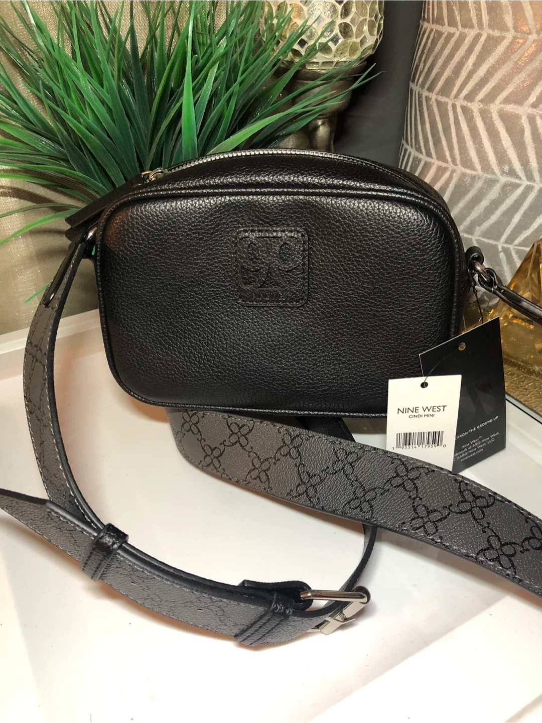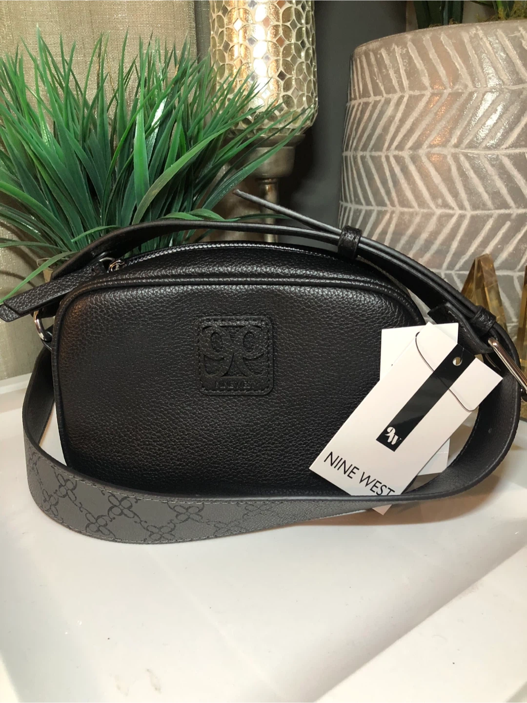 37This Nine West crossbody bag is perfect for everyday use! It's in great condition and features a stylish design. The bag is black with a patterned strap. It's a great size for carrying your essentials!