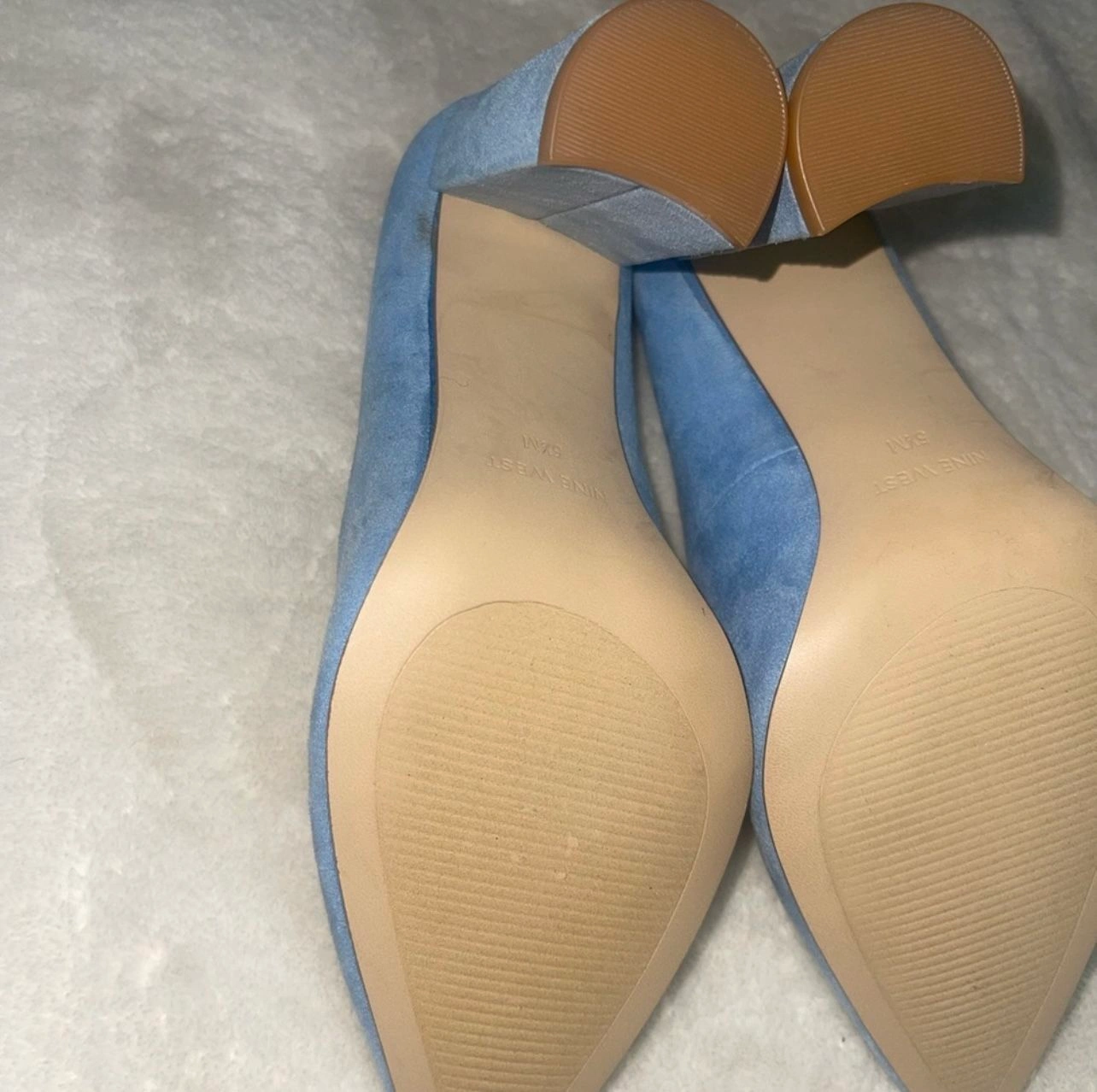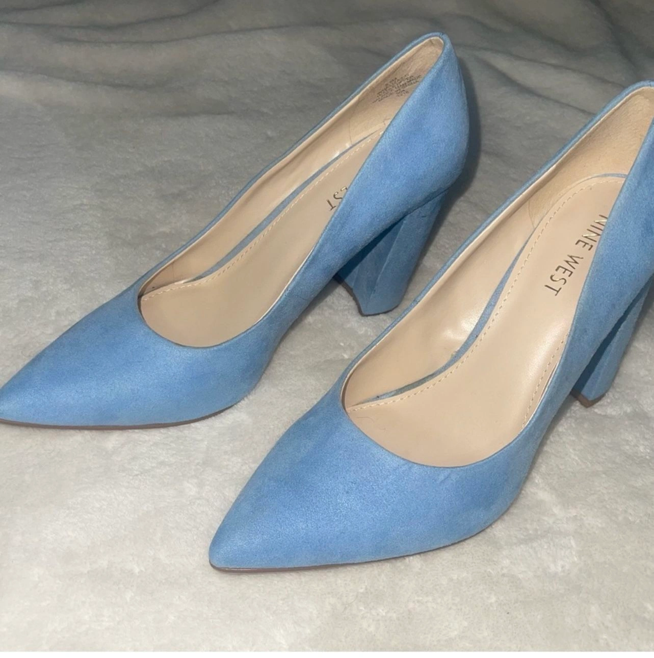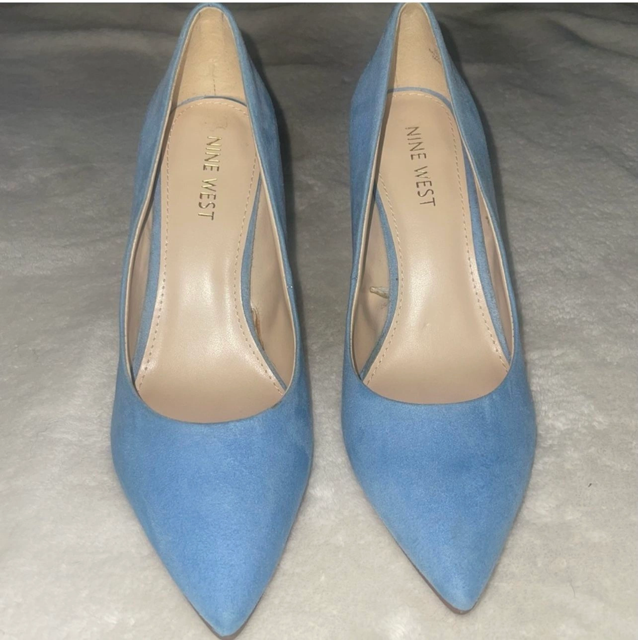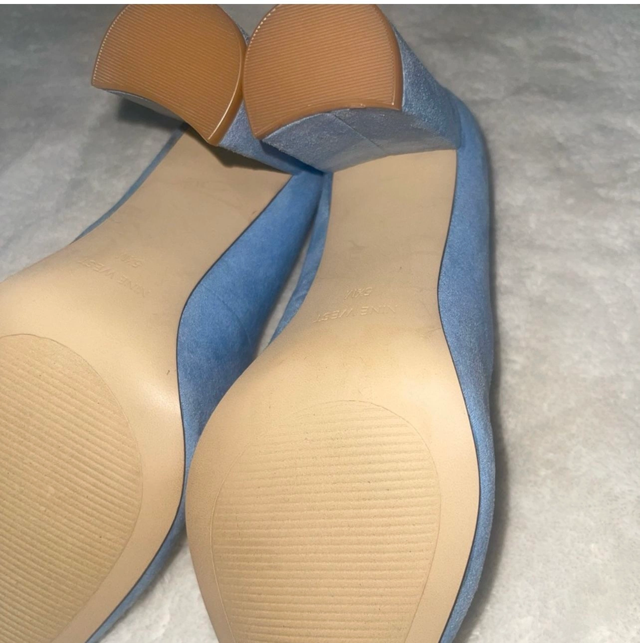 Suede material. Condition: Like New (No Box included). A couple of imperfections, look at pictures. Heel size 3.5 inches. Shoe size 5.5. Brand: Nine West. Let me know if you're interested!