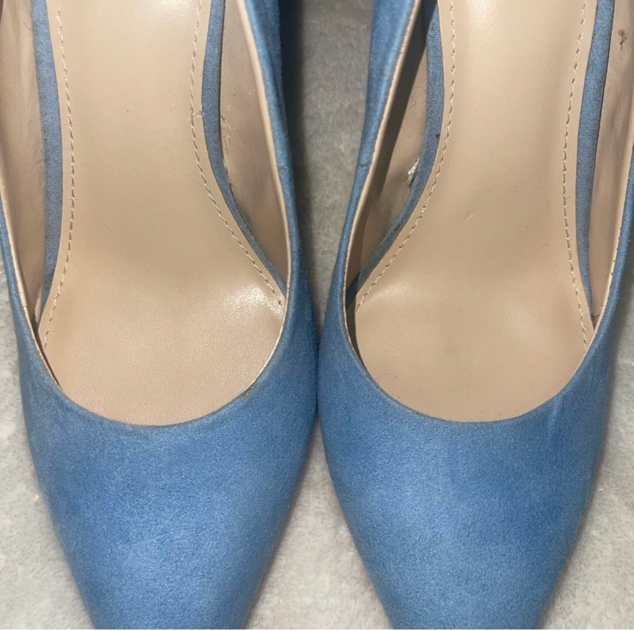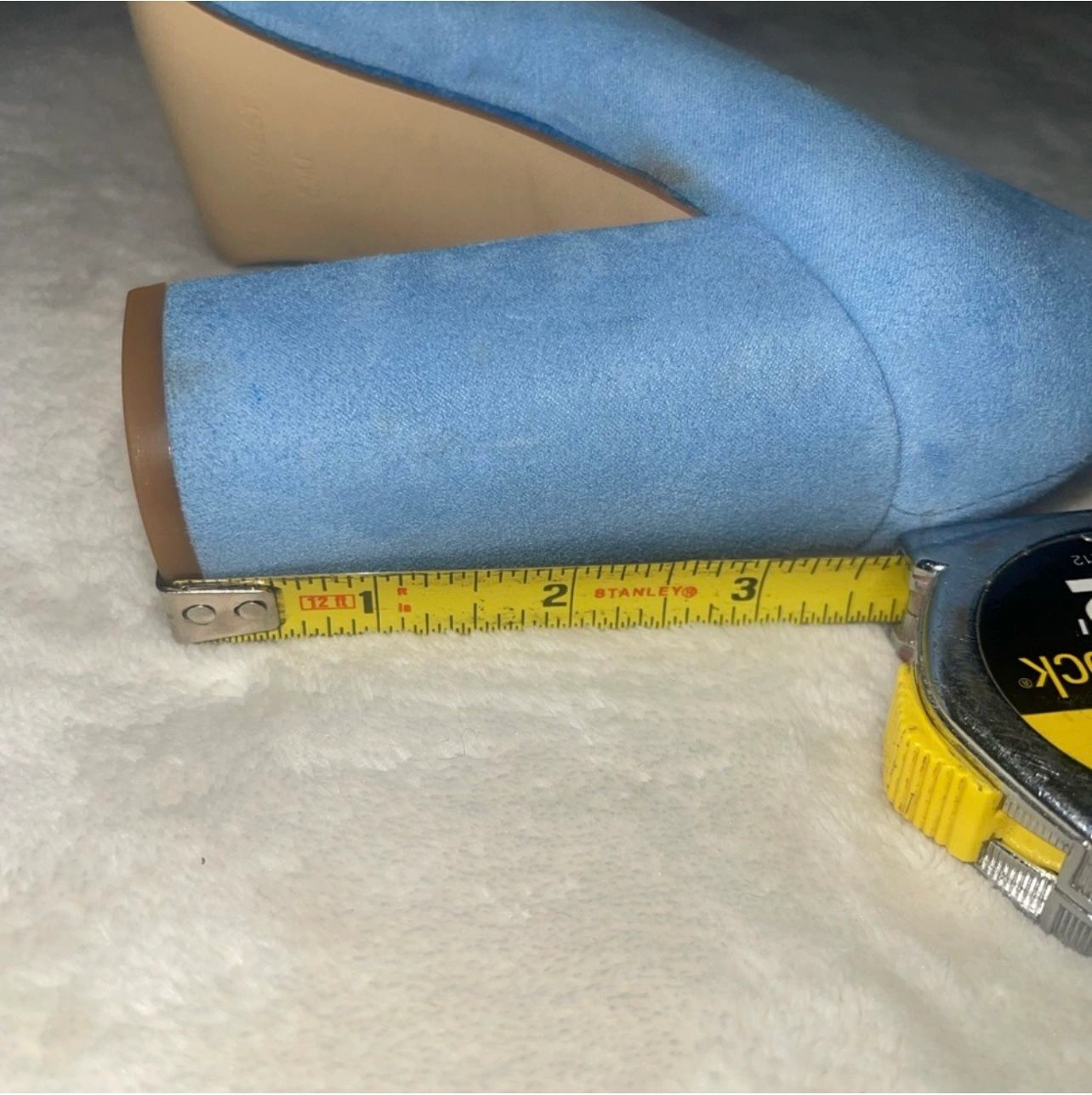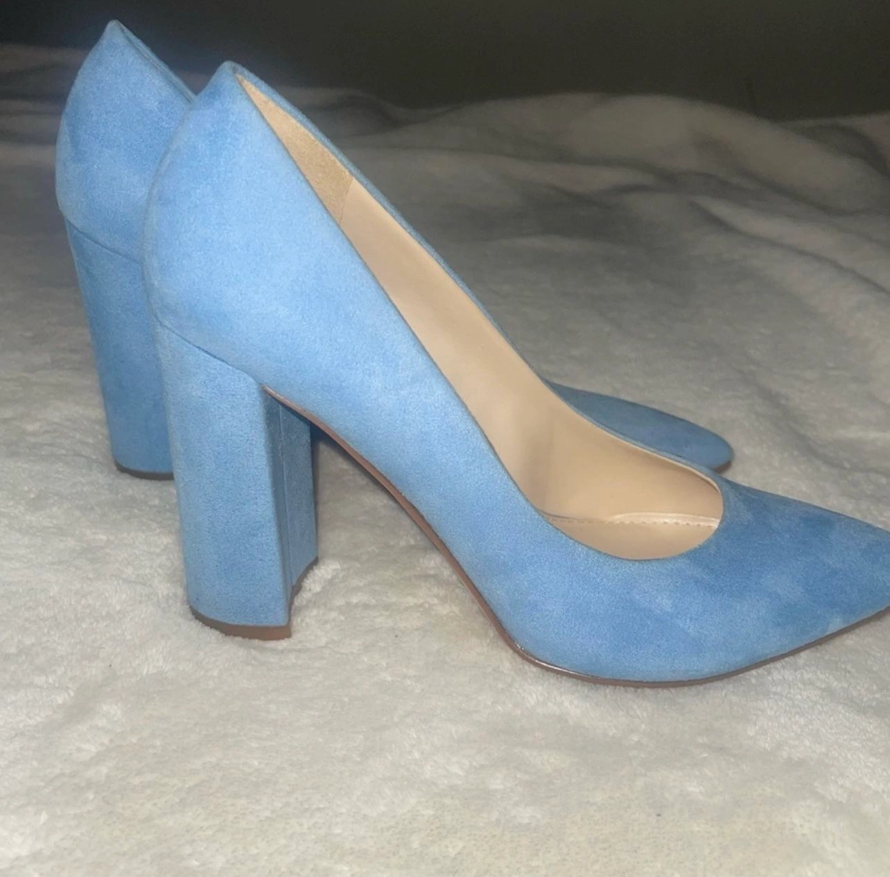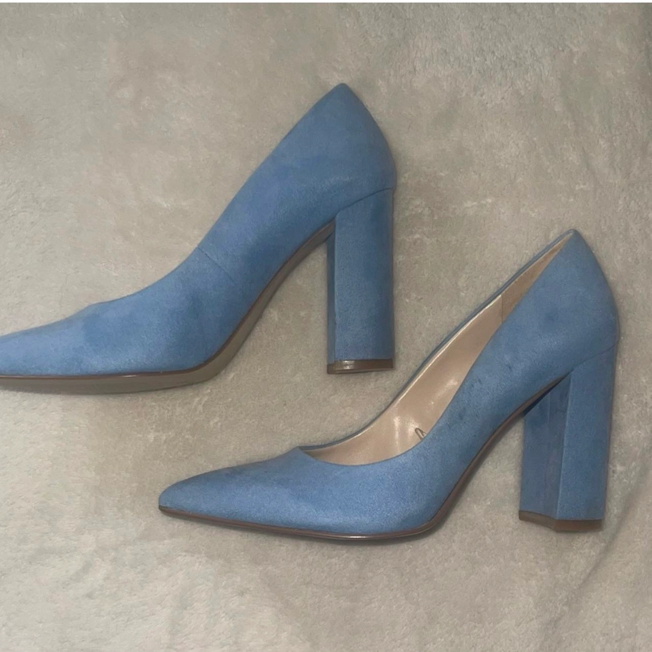 Suede material. Condition: Like New (No Box included). A couple of imperfections, look at pictures. Heel size 3.5 inches. Shoe size 5.5. Brand: Nine West. Let me know if you're interested!