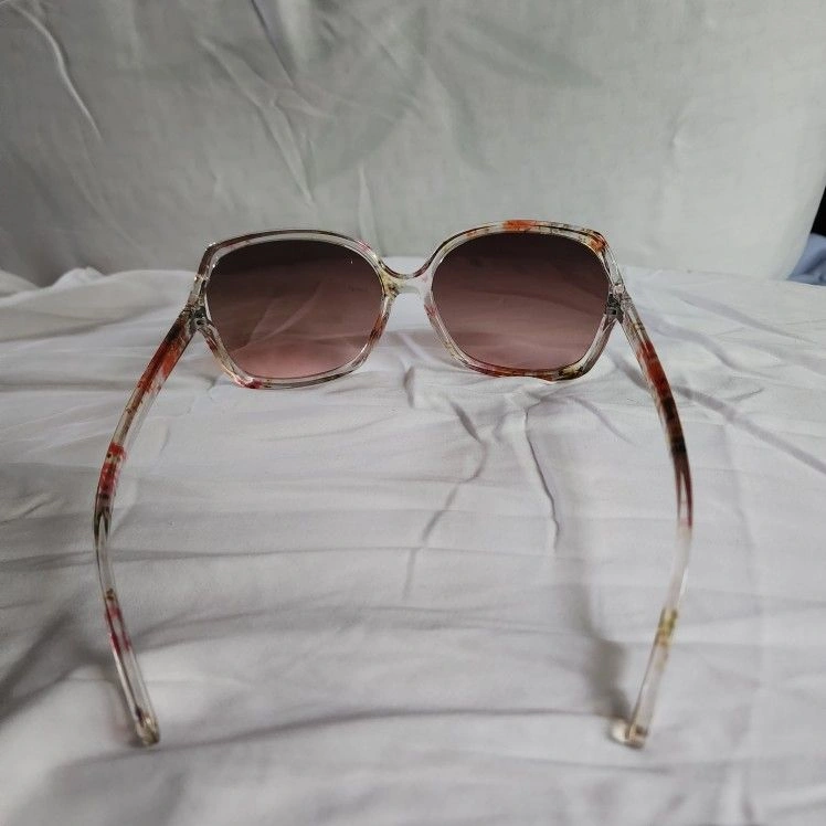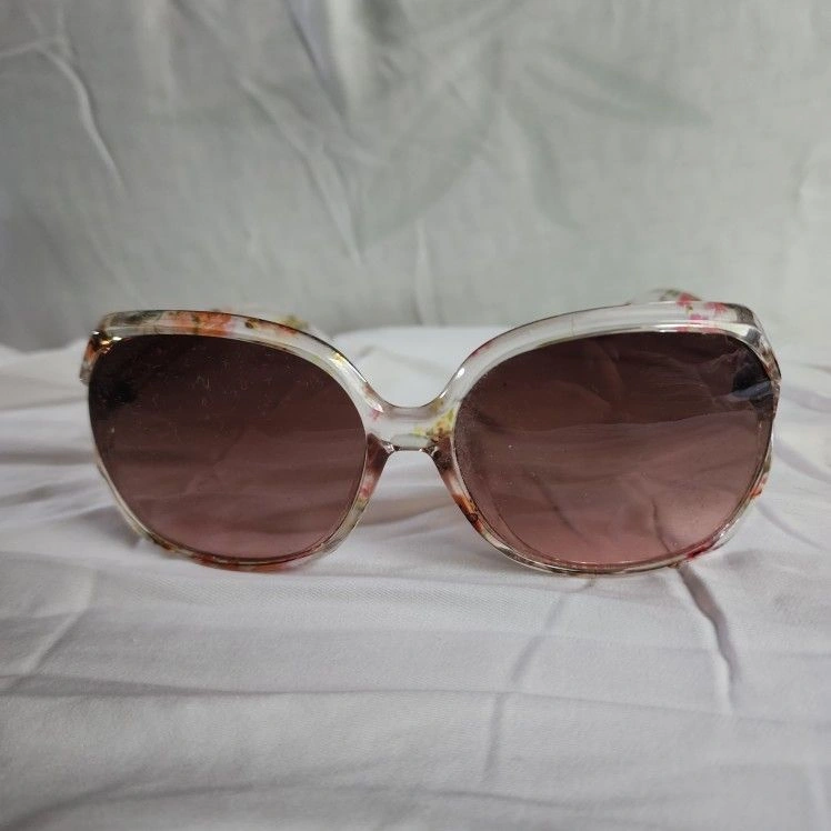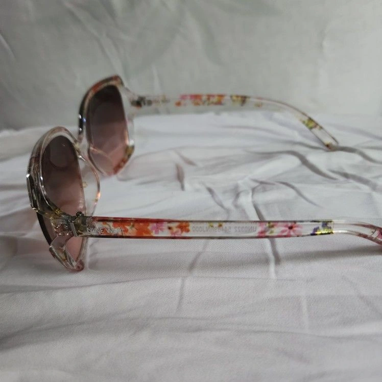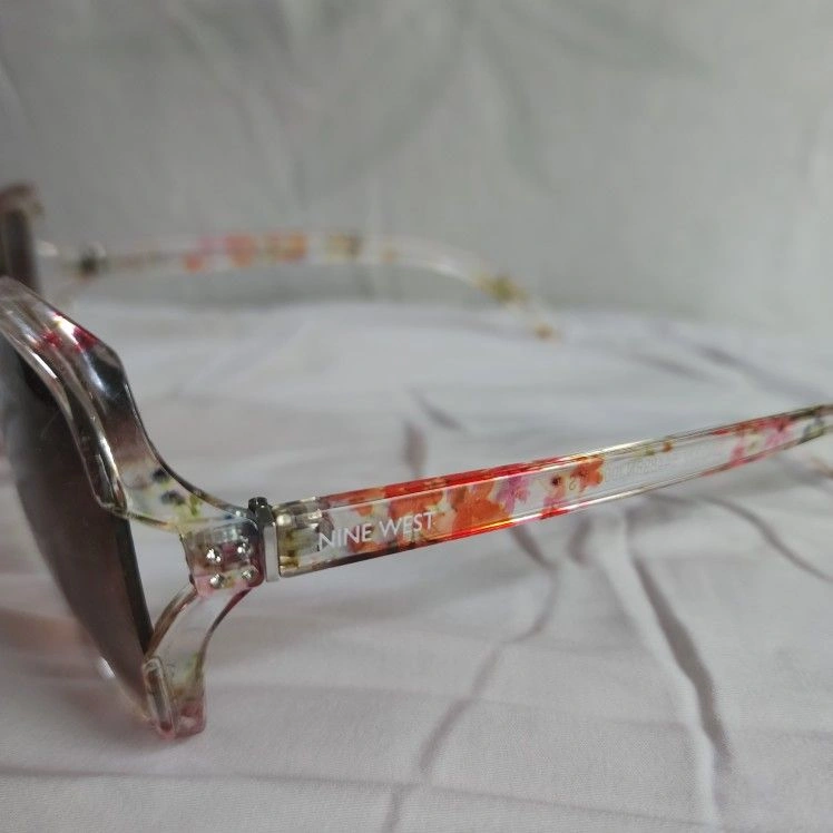 15Floral-designed sunglasses. Clear frames. Gradient lenses. These sunglasses are ideal for a relaxing day at the beach. Lens Color: Gradient black to pink Frame Color: Multicolor Brand: Nine West