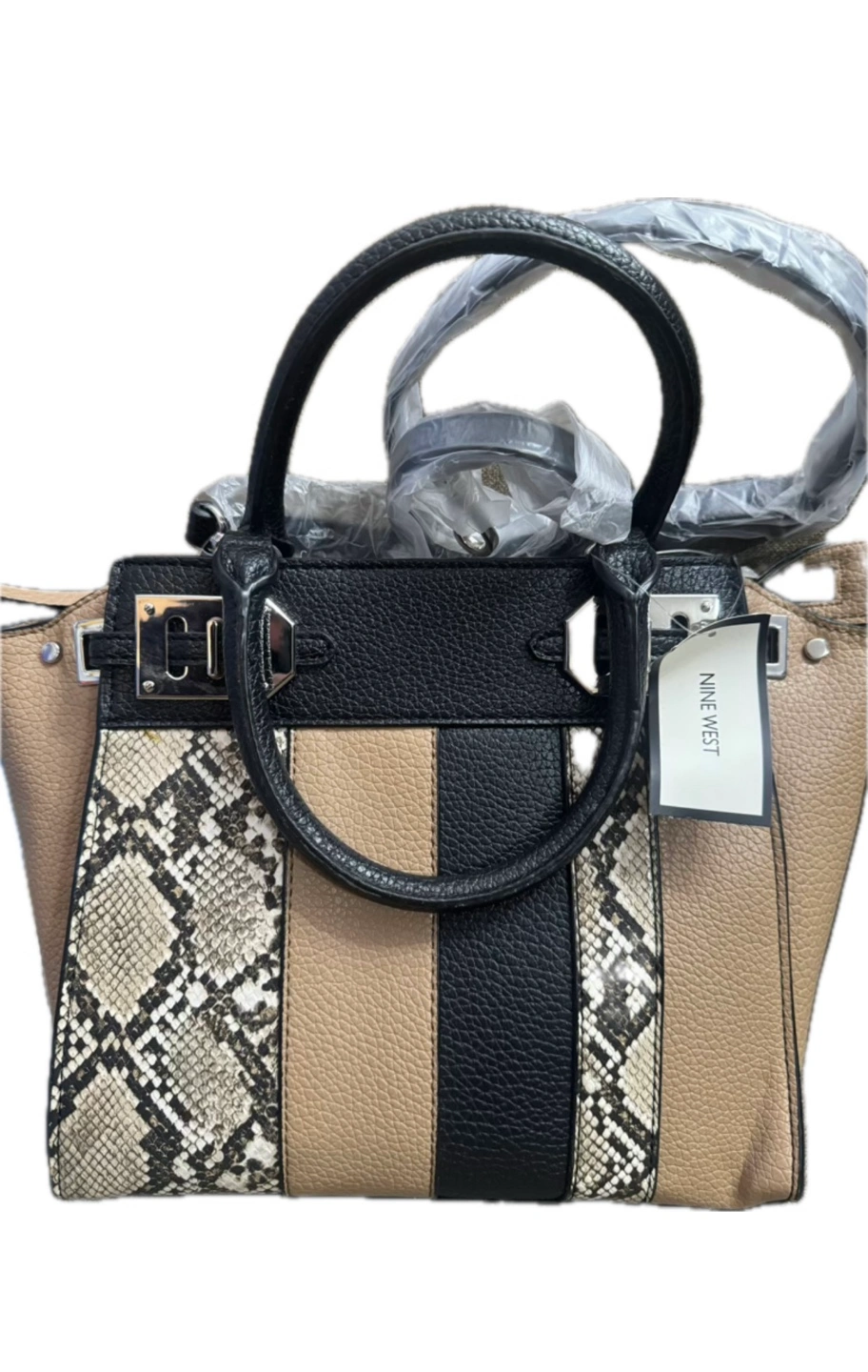Tan, black, and snakeskin satchel. Top handles and shoulder strap. Brand New with tag.
