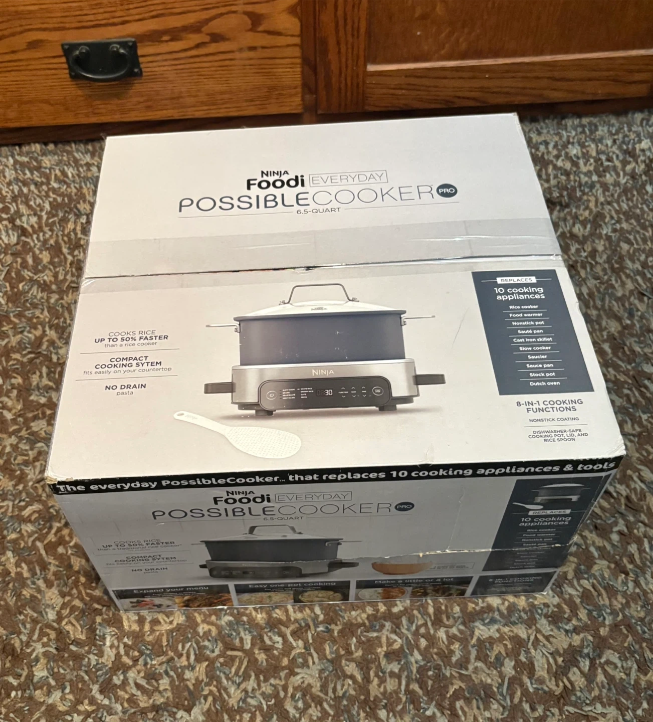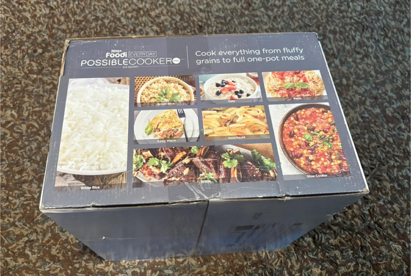 Brand New in Box Ninja Foodi Everday Possiblecooker. This is a 6.5 quart crockpot that works like a dream. This one is in box and has never been used or opened. There is some minor cosmetic damage to the box but no damage to its contents. Asking $75.00 or best offer.