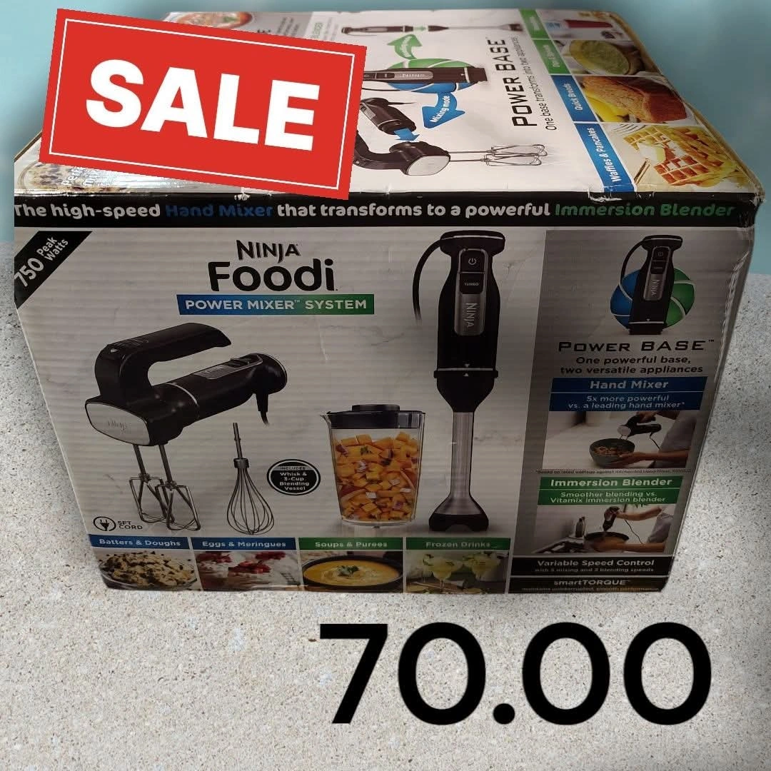 Selling a Ninja Foodi Power Mixer System. It's a high-speed hand mixer that transforms into a powerful immersion blender! It comes with a power base, which is one powerful base for two versatile appliances. You can use it as a hand mixer or an immersion blender. It's 5x more powerful than a leading hand mixer and provides smoother blending compared to a Vitamix immersion blender! Perfect for batters, doughs, eggs, meringues, soups, purees, and frozen drinks