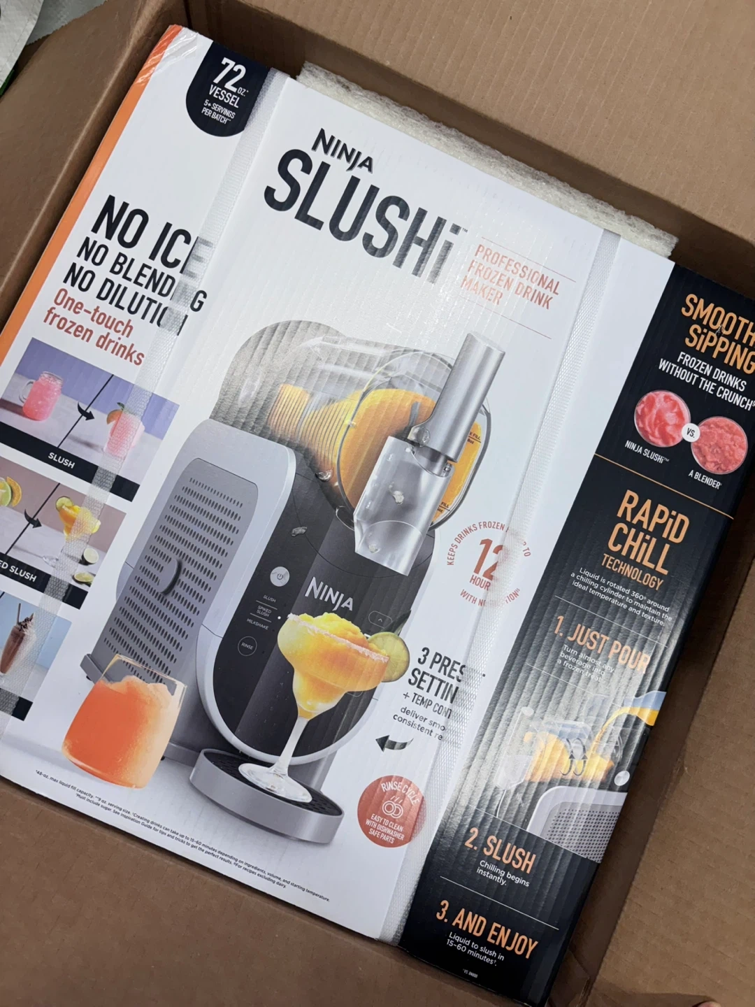 60Get ready to make some amazing frozen drinks with the Ninja Slushi Professional Frozen Drink Maker! It's designed for one-touch frozen drinks with no ice, blending, or dilution needed. The rapid chill technology rotates liquid 360° around a chilling cylinder to maintain the ideal temperature and texture. Plus, it's easy to clean with dishwasher-safe parts! Enjoy smooth sipping frozen drinks without the crunch!
