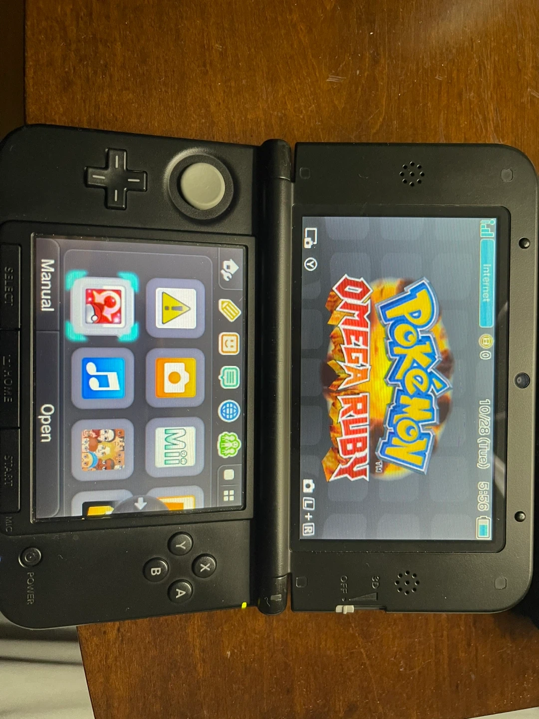 18Selling a blue Nintendo 3DS. It comes with a charger and four Pokemon games: Pokemon X, Pokemon Sun, Omega Ruby, and Ultra Moon