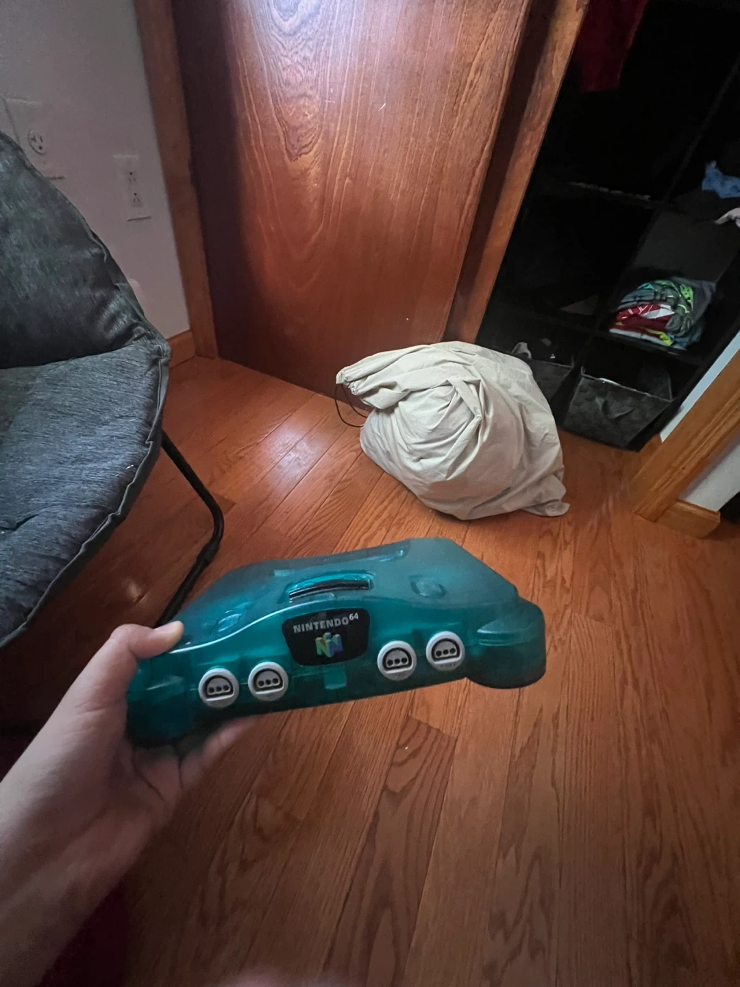 Selling a used Nintendo 64 (N64) console in ice blue! It's in good condition and ready for a new home. Perfect for reliving classic gaming memories!