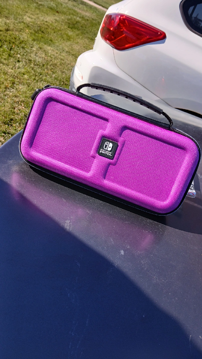 Selling a Nintendo Switch console with Neon Blue & Red Joy-Con. It comes with a case and four games: Nintendo Switch Sports, Animal Crossing New Horizons, Super Smash Bros Ultimate, and Mario Kart 8 Deluxe
