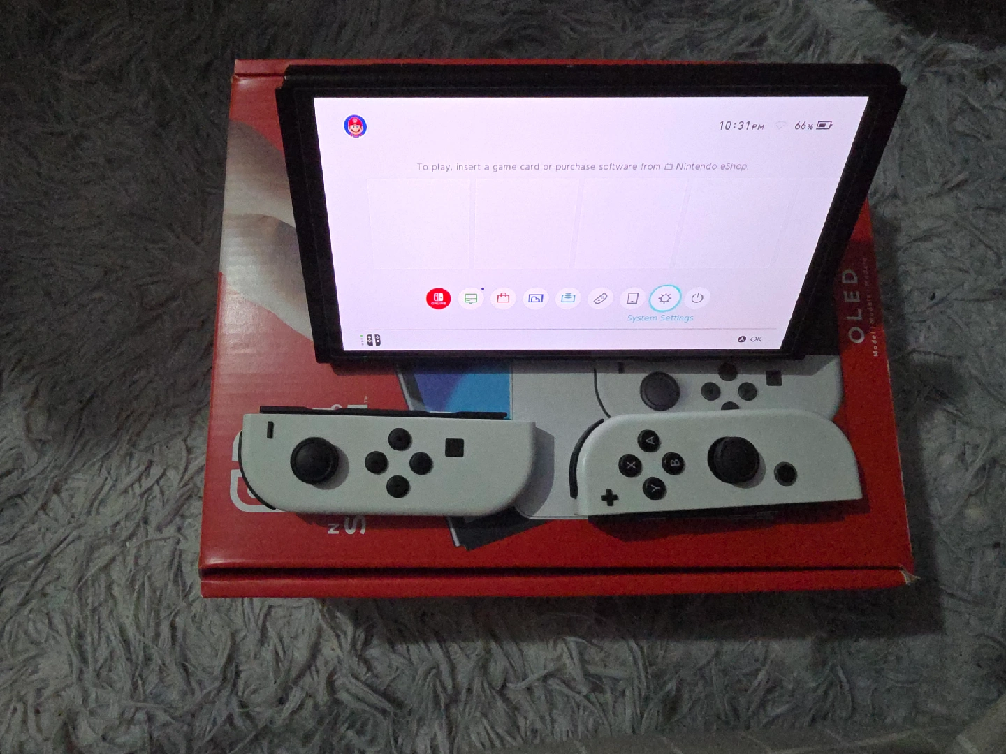 Nintendo Switch OLED Model with white joycons. Has original box, dock, adapter and 512gb microsd.