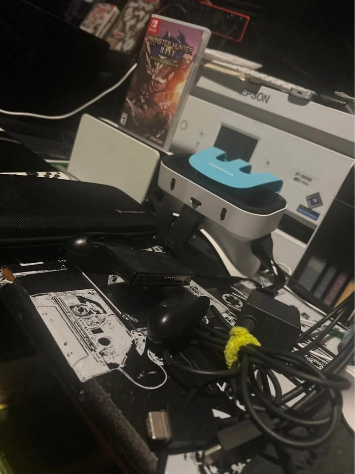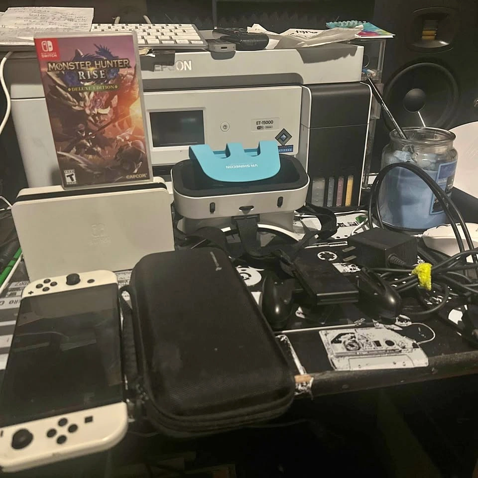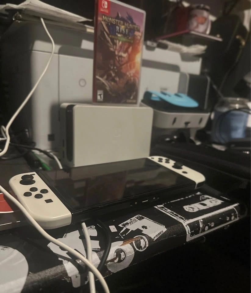 Comes with two games: Monster Hunter Rise Deluxe Edition and Mortal Kombat 11, VR glasses, HDMI cable, controller and original charger cable, and a bag. Ready to use on TV or anywhere!