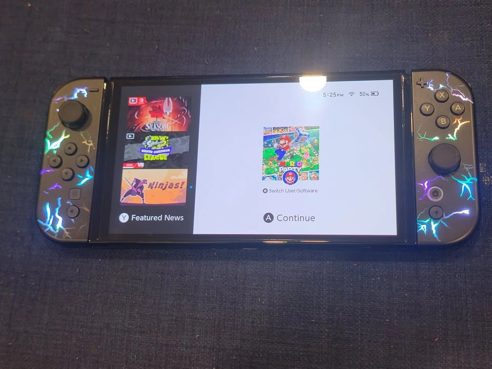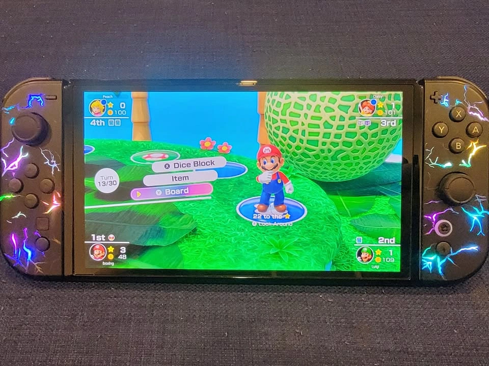 10Nintendo Switch Oled Model, Mario Party Superstars Game Included. This console was well kept, barely used, adult owned. The glass has a very small nick but unnoticeable when playing a game. The Switch also comes with original Joy-Cons.
