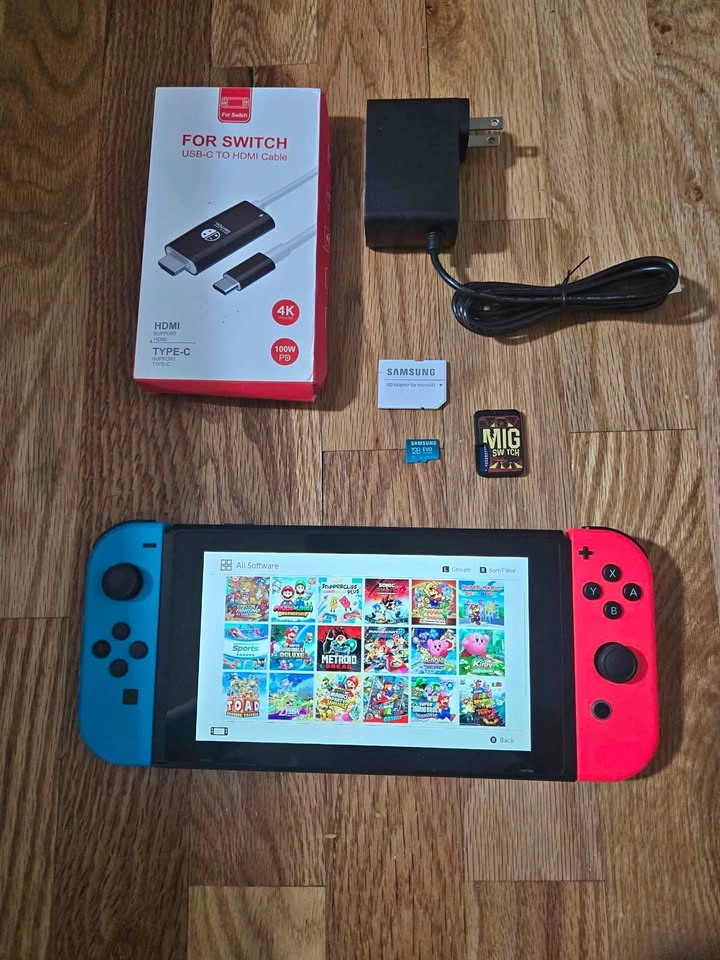 80Includes: Console Mig switch 128gb sd card With games(18 games) Power adapter Usb-c to hdmi cable You can pick games you want. Works on any nintendo switch. Price firm. Pickup only in Flushing, Queens 11355 Mig switch only (no games) $150 128gb sd card only $50 256gb sd card only $80 512gb sd card only $120 500gb hard drive only $100 1TB hard drive only $150 2 TB hard drive only $180 4TB hard drive only $250