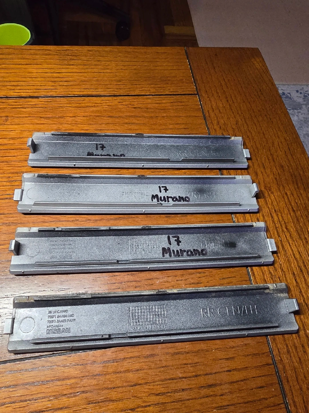 65Selling a set of four roof rack covers for a 2017 Nissan Murano. They are silver in color and in good condition. Perfect replacement parts if you're missing these!