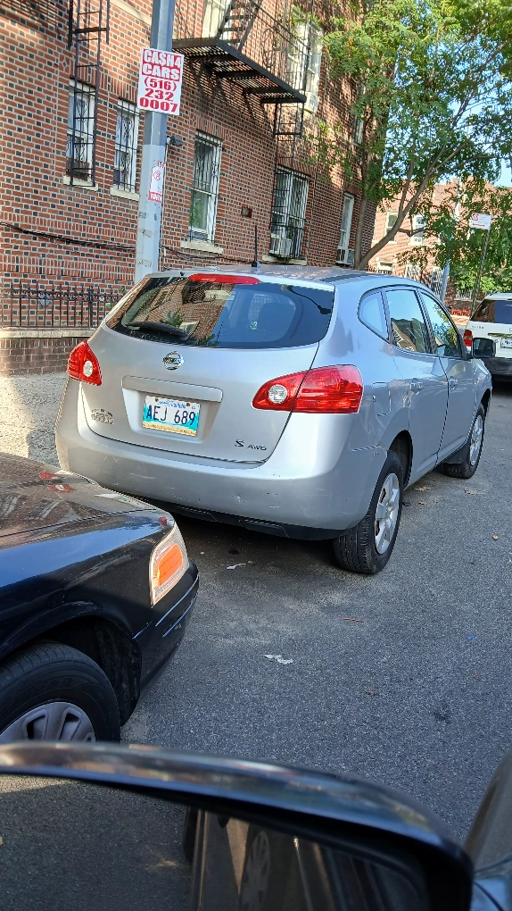 Selling a silver Nissan Rogue SUV. It has some visible wear and tear on the front and rear bumpers.