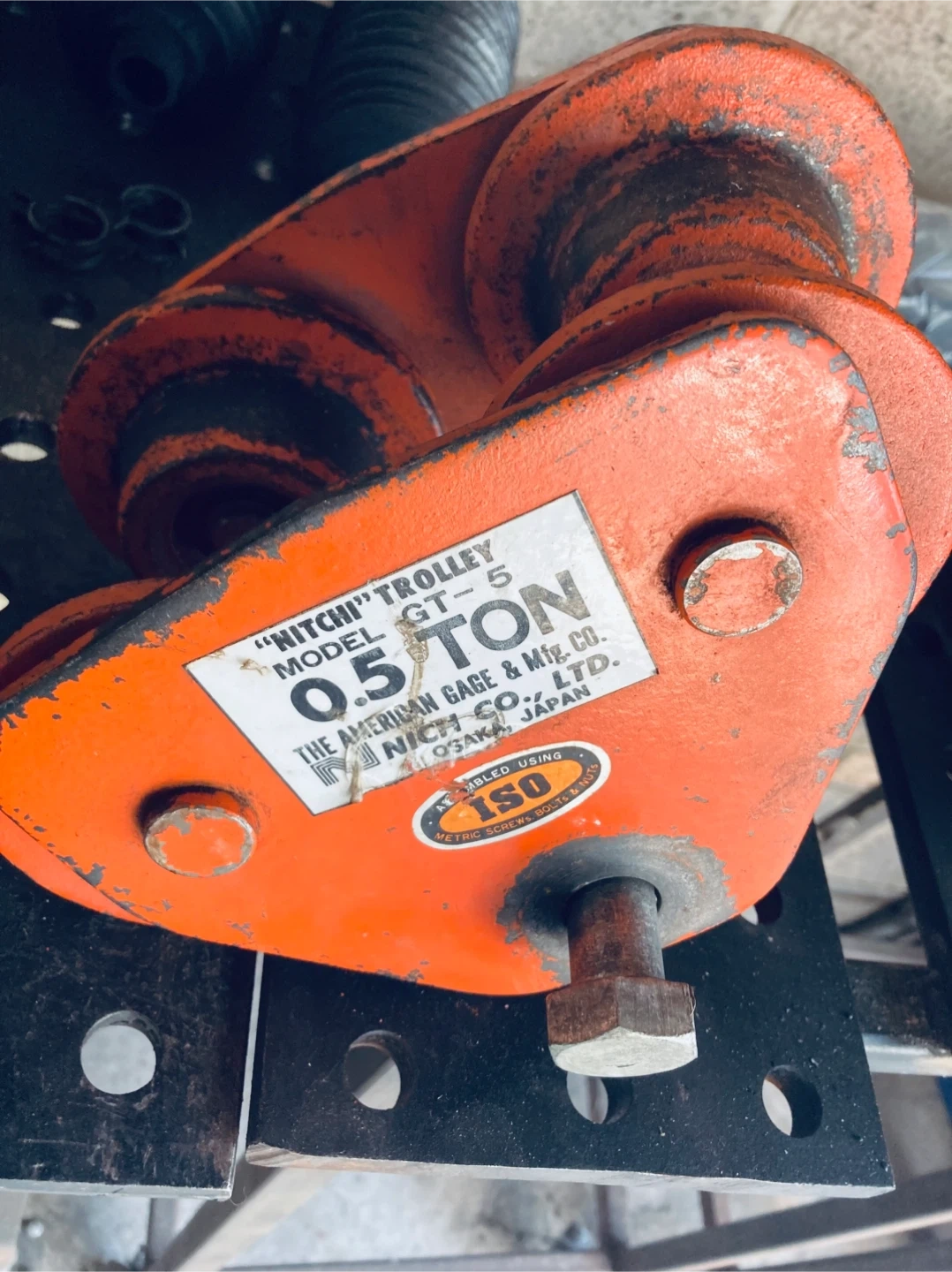 Selling a Nitchi Trolley, model GT-5, with a 0.5 ton capacity. It's in used condition, as you can see in the photos, but still works great!